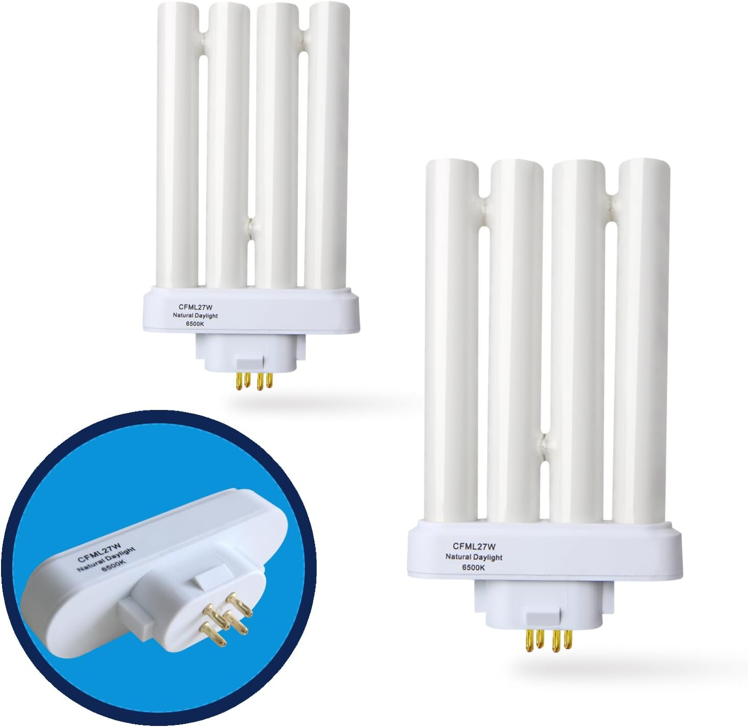 CFML27W Natural Daylight Spectrum Light Bulb,GX10Q-4 4 Pin Base and T4 Tube shape,6500K,Length:6 inches,Width:3.5 inches - 2 Pack