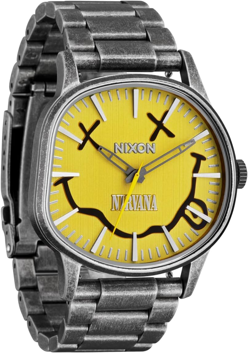 NIXON x Nirvana Sentry Wobble A1417- Nirvana Smiley Mens Watch- (42mm Watch Face, 23mm-20mm Stainless Steel Band)