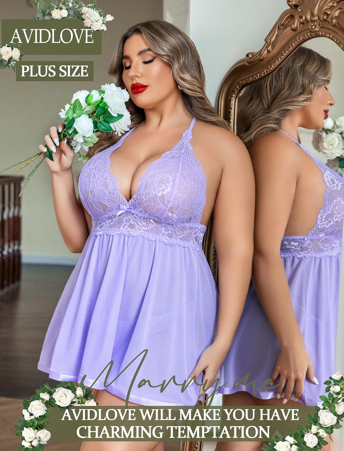 Avidlove Women Plus Size Babydoll Lingerie Lace Chemise Mesh Sleepwear
