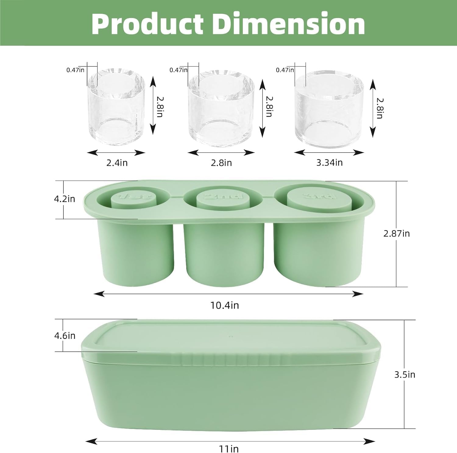 Tcamp Ice Mold for Stanley Cup 30-40 oz Tumbler Cup Ice Mold, Silicone Ice Cube Tray With Lid and Bin for Chilling Cocktails, Whiskey, Drinks, Coffee, Easy Fill and Release Ice Maker (Green)