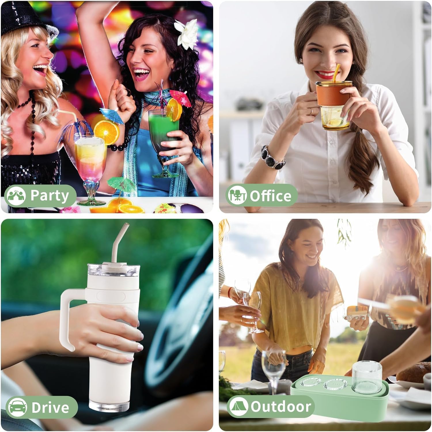 【20/30/40 oz Tumbler Ice Mold】Our silicone ice mold creates three specially designed hollow cylinder ice cubes. The 1st 2nd 3rd ice cubes are perfectly compatible with 40 Oz tumbler cup. The 1st+2nd ice ring cubes can be used for 20 Oz-30 Oz tumbler cups (Notice: The 3rd ice cube is not compatible with the 20 Oz and 30 Oz tumbler)