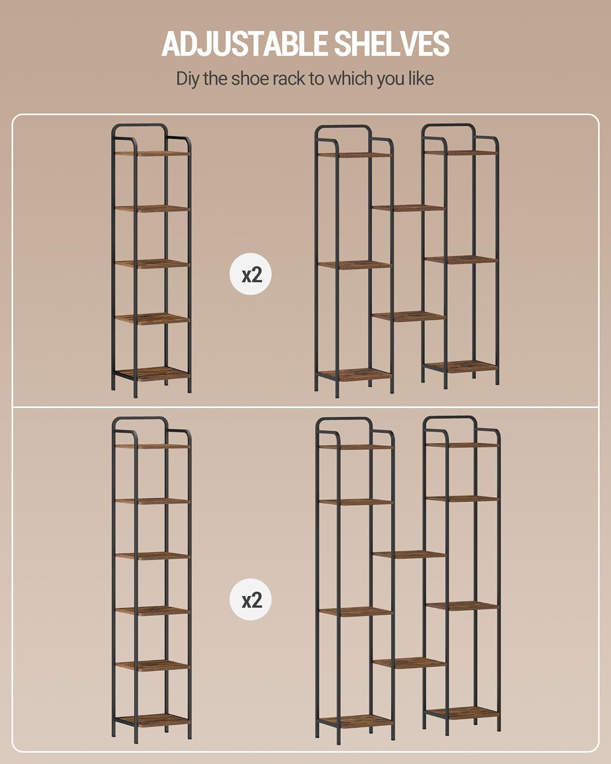 Bookcase Bookshelf, Narrow Book Shelf, Industrial Corner Shelf Storage Organizer, Slim Shelving Unit for Home Office, Living Room, Bedroom, Kitchen, 6-Tier Rustic Brown and Black BC24601B