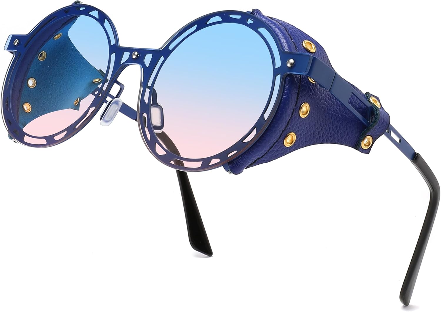 Technigadgets Julian Steampunk Sunglasses Retro Round Metal Frame With Leather Sideshield Mirrored Eyeglasses Mens Gift