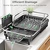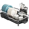 Estante Secadora de Platos, Estante Expandible para Contenedor de Cocina, Secador de Platos de Acero Inoxidable con Set de Tabla de Escurrido y Soporte para Utensilios (Negro)