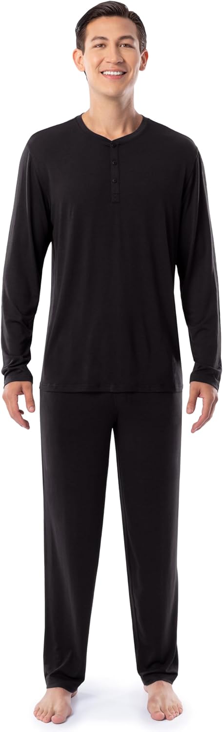 Fruit of the Loom Men's 360 Stretch Long Sleeve Henley Top and Pant Sleep Pajama Set