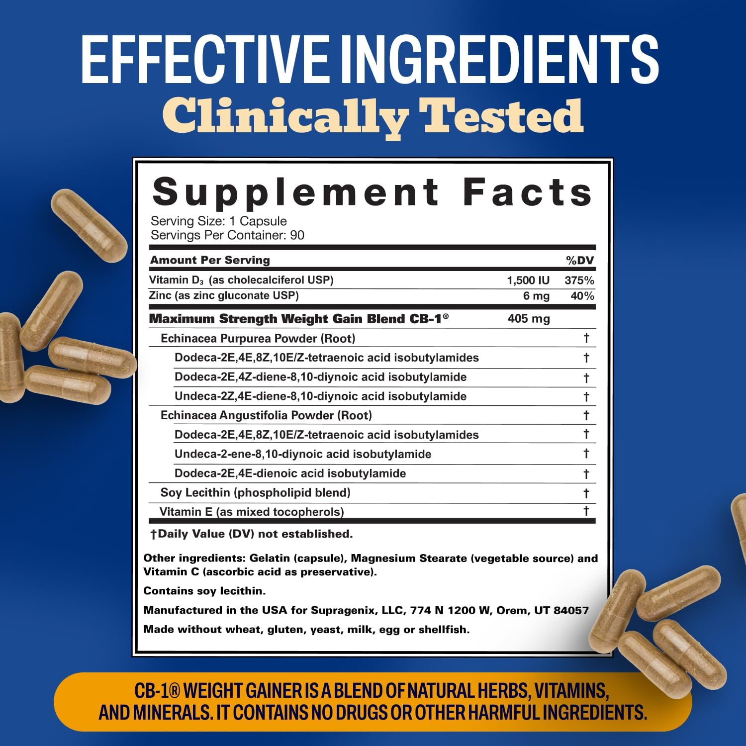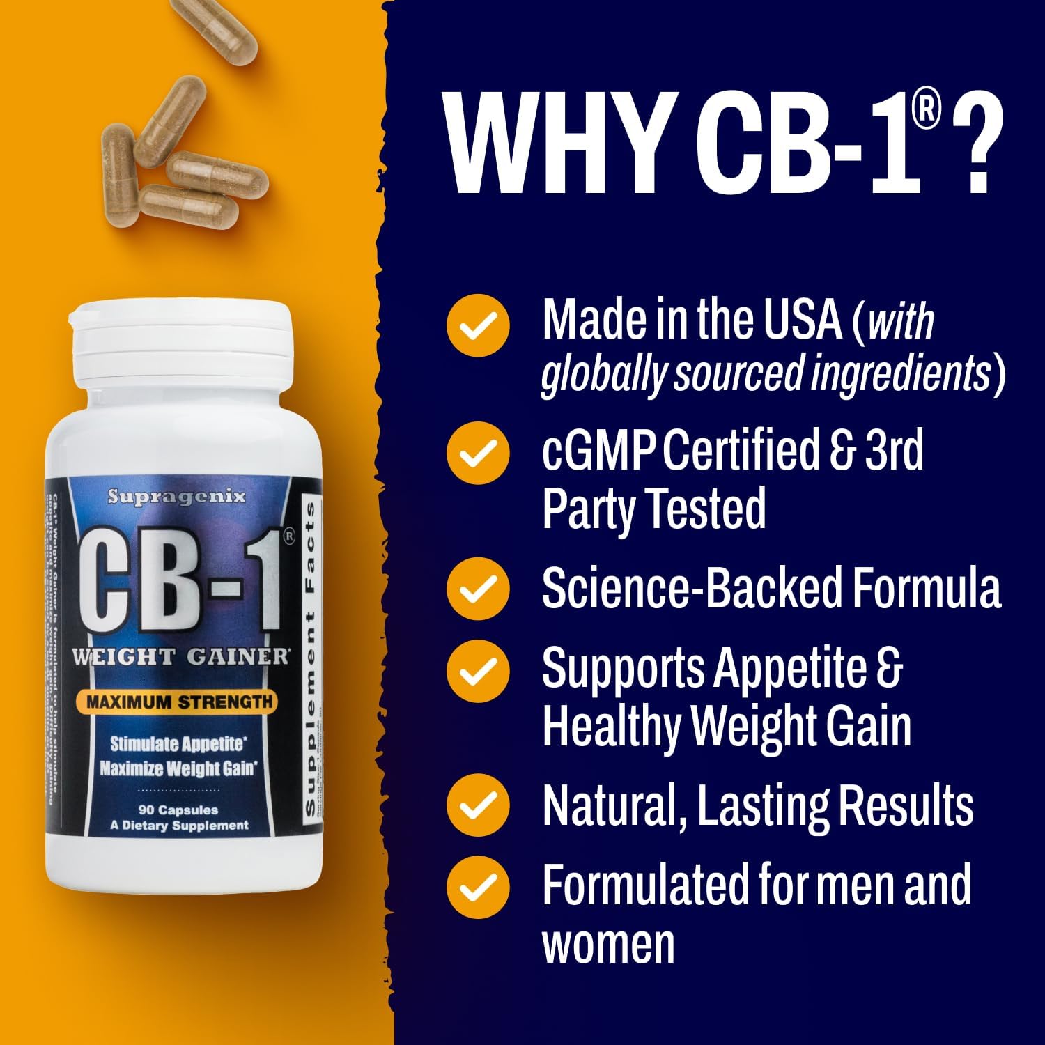 CB-1 Weight Gainer Pills (90 Count) | Weight Gain Support for Women & Men | Clinically Tested Appetite Booster | Powerful Mass Gainer