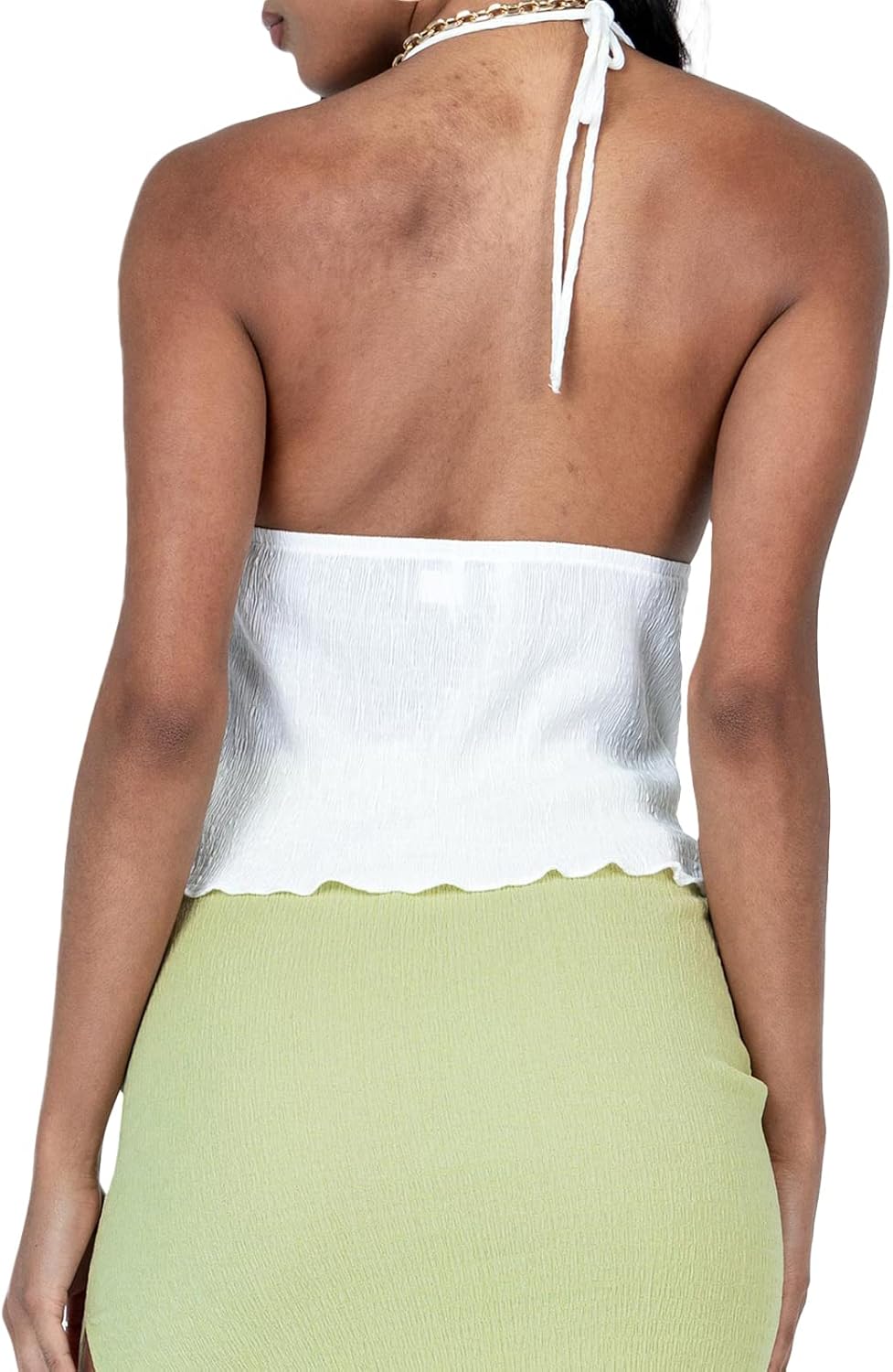 Women Y2k Front Tie Crop Tops Halter Neck Flowy Plisse Summer Going Out Top Sexy Split Sleeveless Cami Shirt
