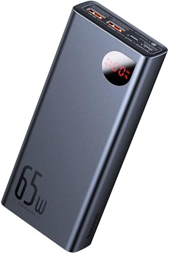 Baseus Portable Charger Power Bank, 20,000mAh PD 65W Travel Battery Bank, Smart Digital Display USB C Battery Pack for Laptop, MacBook, iPad, iPhone 15/14/13 Series, Samsung S23, Steam Deck, ROG Ally