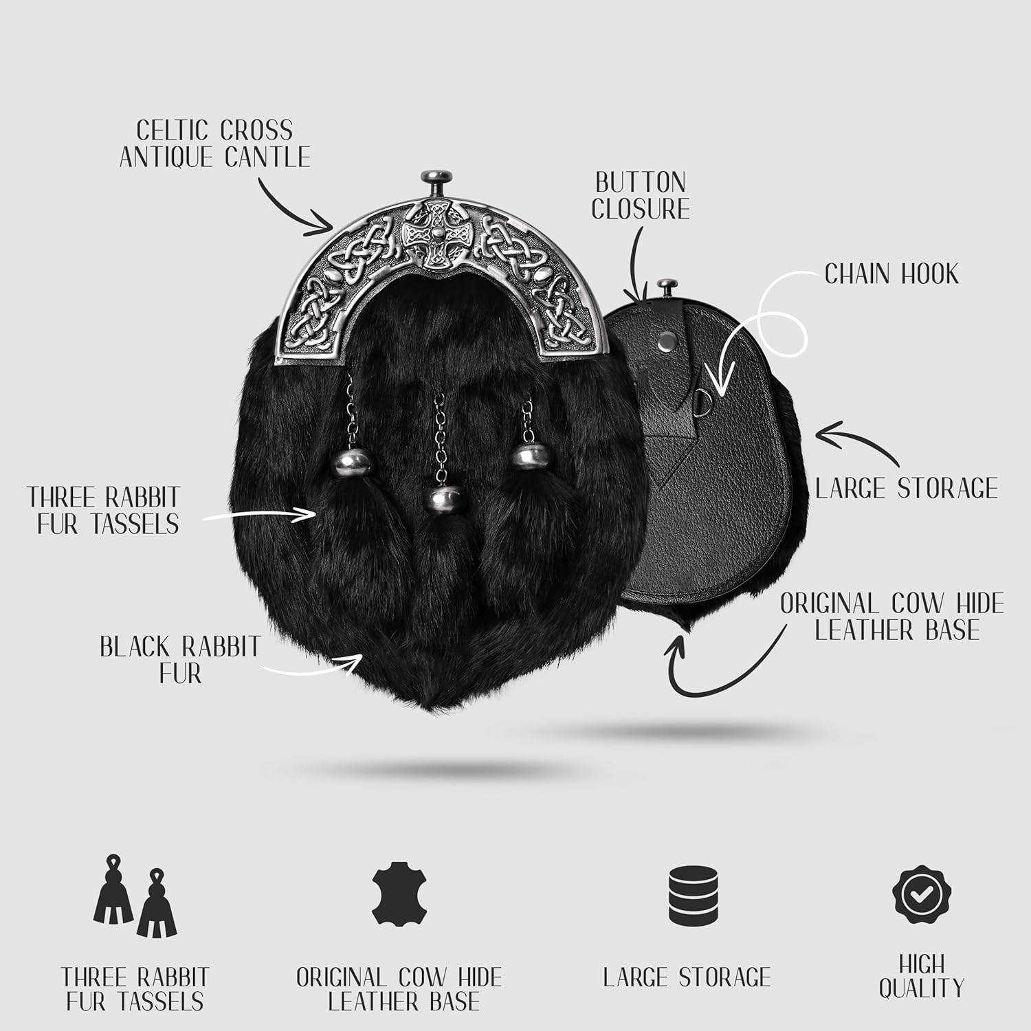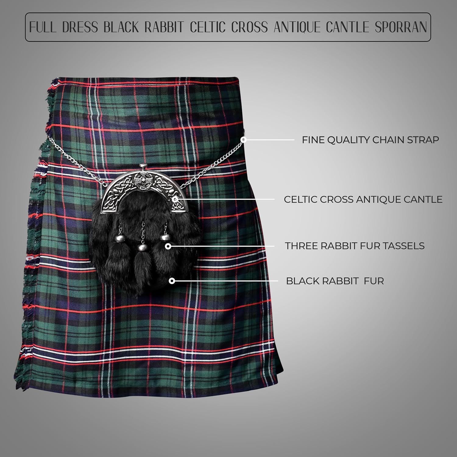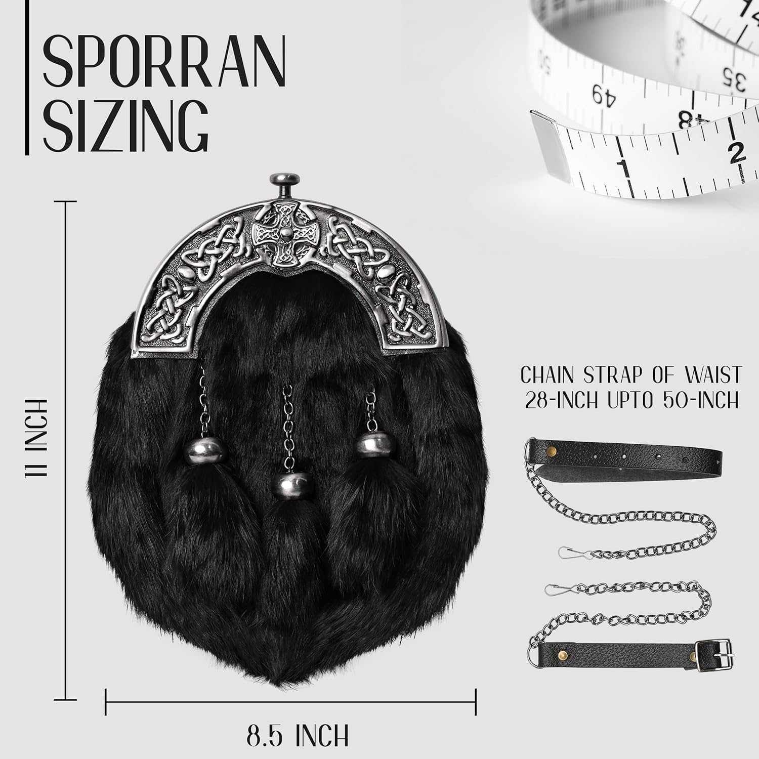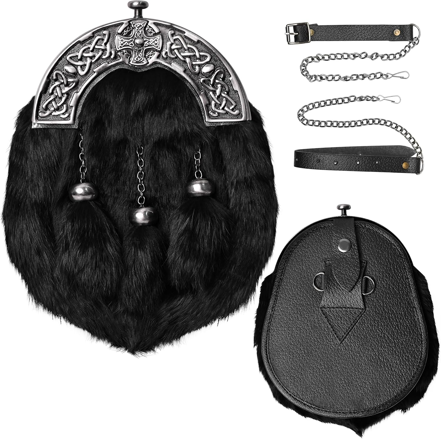 Sporran Kilt for Men Premium Fur Full Dress Scottish kilt Sporrans for men with Chain Belt Kilt Accessories
