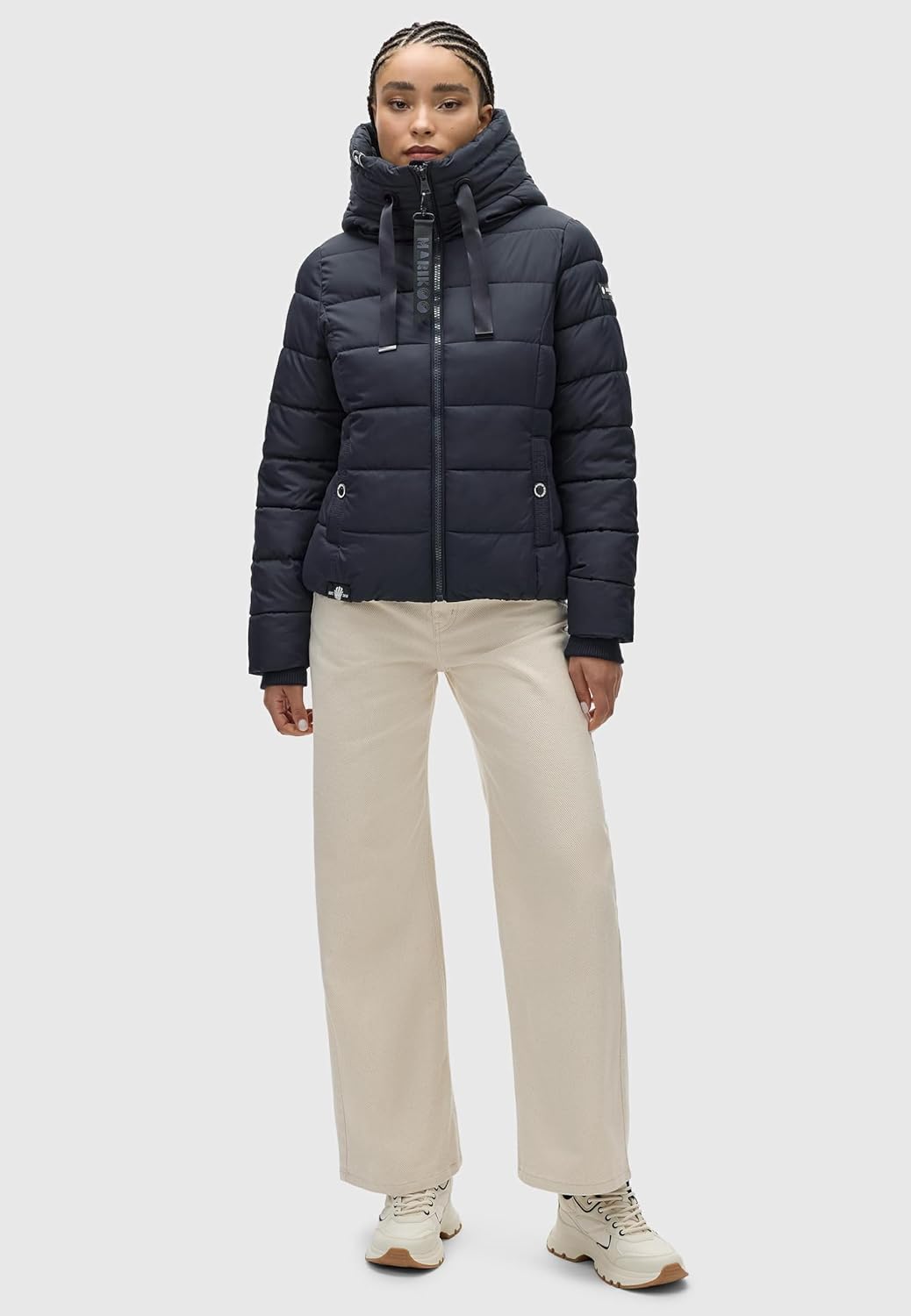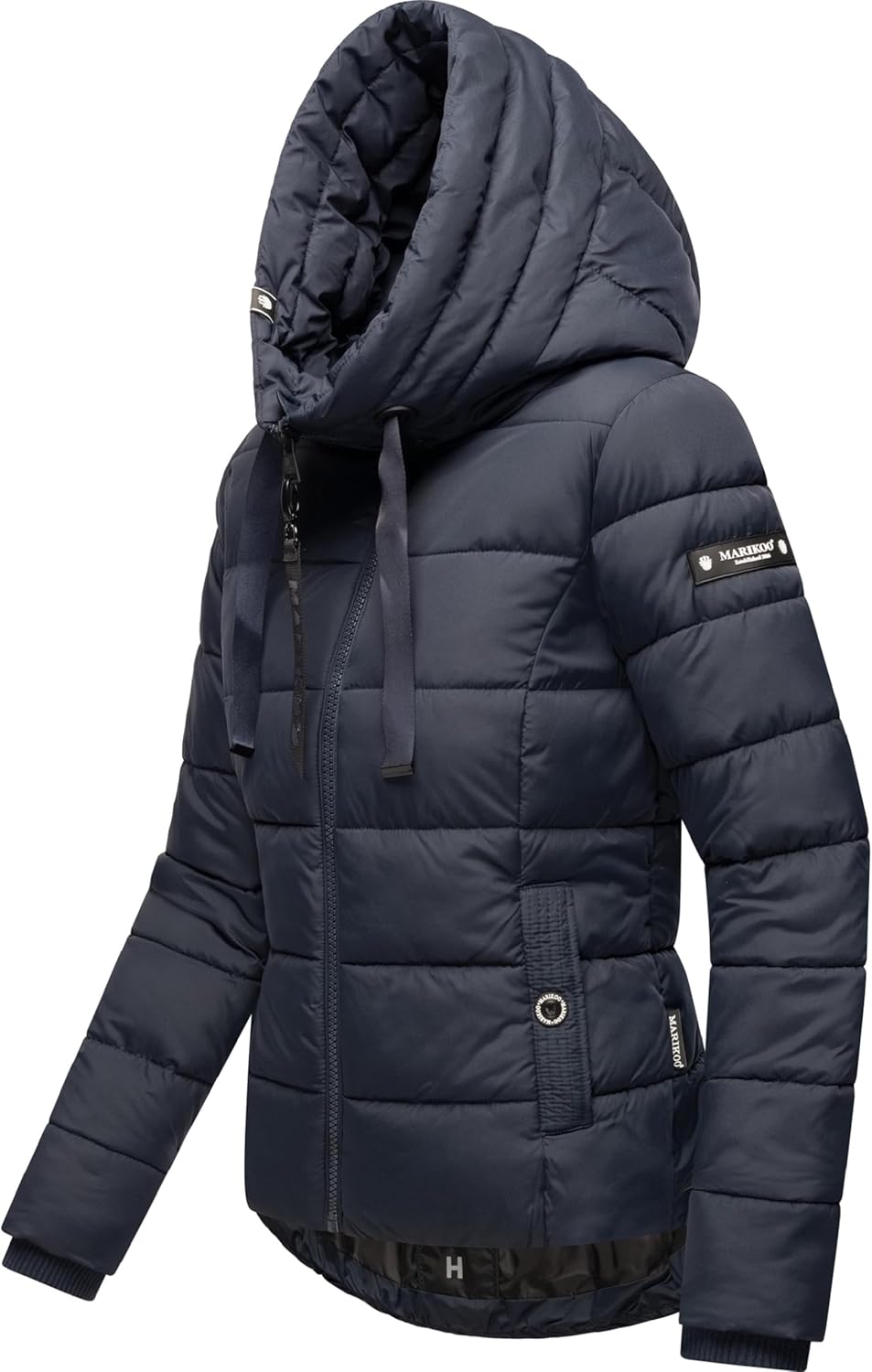 Women's Quilted Jacket Amayaa by MARIKOO The Women's Quilted Jacket Amayaa by Marikoo is the perfect companion for all your outdoor activities! Whether you're walking the dog, hiking, or strolling through the city, this stylish outdoor jacket is a true all-rounder that can be worn how you want - with jeans, on your way to the gym, or for a weekend at the ski resort. With its high-quality craftsmanship, matte shimmering outer material, handy pockets and extra features, like a high collar and fleece-lined outer pockets, it impresses with fashionable yet functional details. Color Variety and Style Available in a wide range of colors, there’s a quilted jacket to suit every taste. Our Black and Anthracite options are perfect for a chic everyday look, while Rusty Cinnamon, Blood Red, and Zinc Grey are more striking, trendy choices. Choose your new favorite for fall and winter. Fit and Comfort This warm hooded jacket extends over the hips and is cut to be slightly longer in the back than in the front, for extra coverage, freedom of movement, and versatility. Thanks to this tailored cut, it can be easily worn over a thick sweater. The high-closing collar prevents cold wind from entering and will keep your neck warm, even in low temperatures. The adjustable hood offers extra protection and comfort.