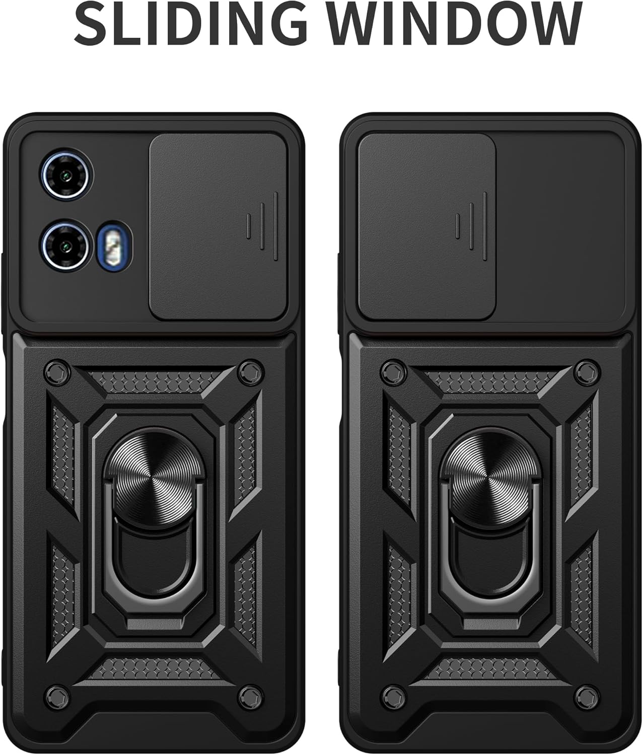 Shockproof Phone Case with Sliding Camera Cover, Compatible with Motorola Moto G34 5G . The case comes with a sliding camera cover that prevents lens damage, blocks the phone's camera and protects privacy when not in use. The sliding cover is very easy to slide and does not loosen easily.