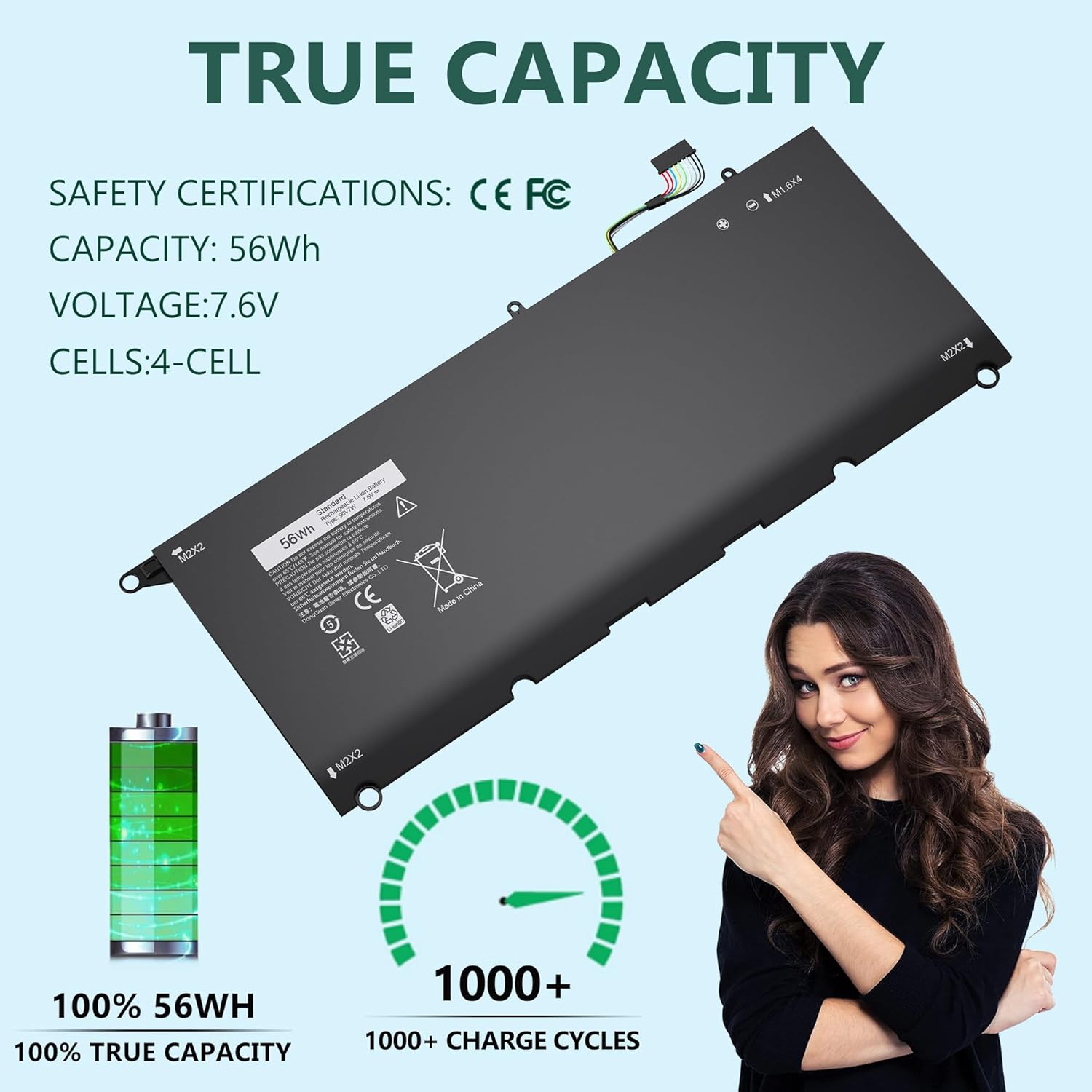 6.UOROLBMY INC engages in factory direct sales of Replacement XPS 13 9350 9343 JD25G 90V7W Battery Replacement for Dell , providing quality power supply products and excellent customer service. Over-charging and over-discharging circuit protection; Over-heating and short-circuit protection; Repeat charging up to 1000 times over the life of the battery