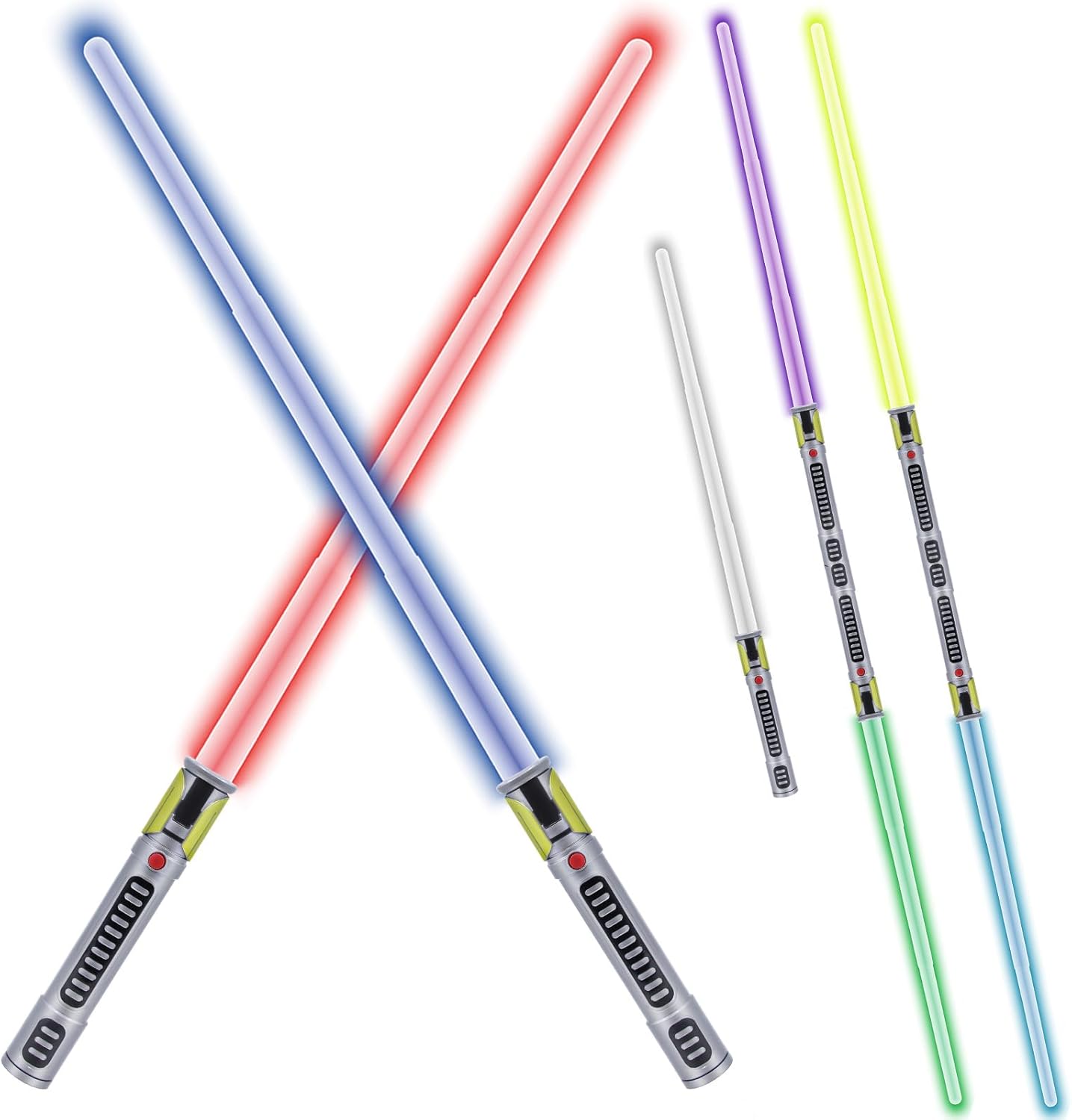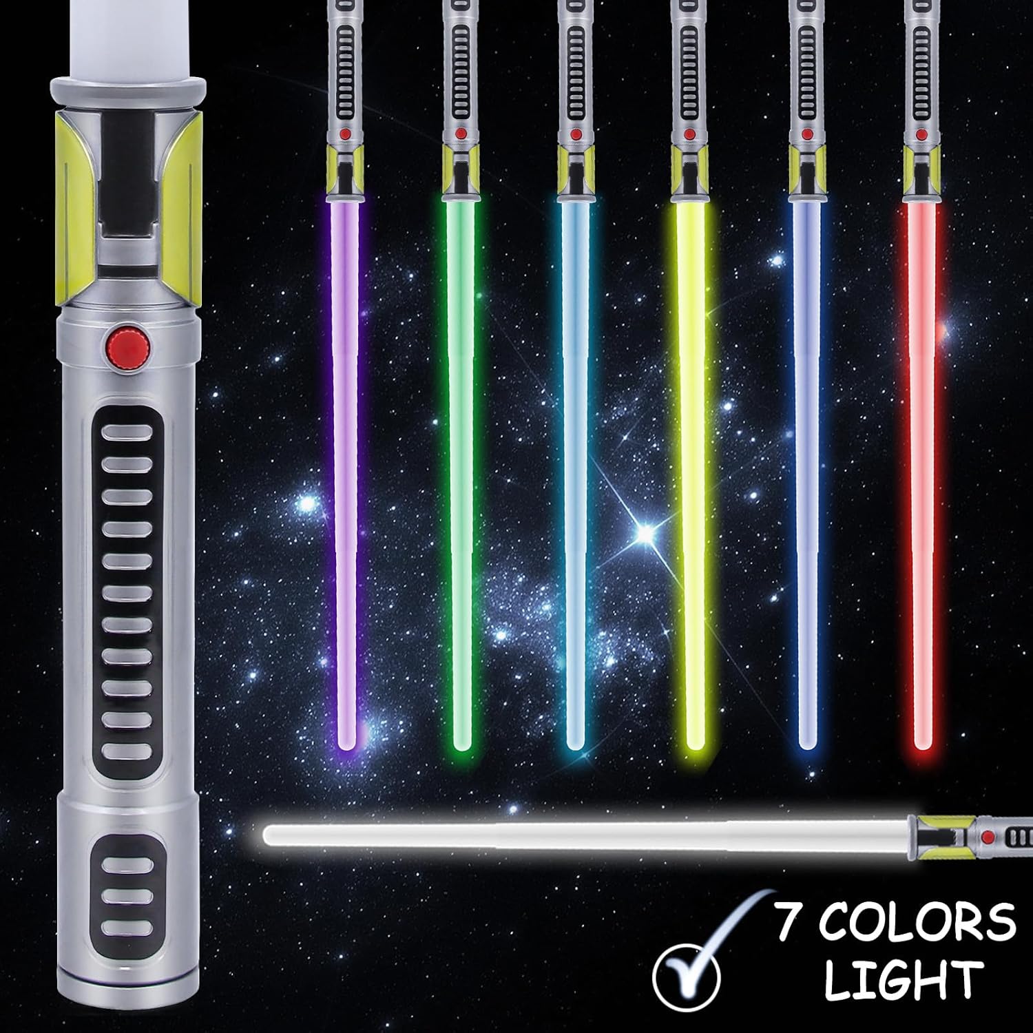 7 Colors Changing Light Saber, Extendable FX Sound with Motion Sensor, Galaxy War Fighter Sword Toy for Kids, Halloween Xmas Birthday Present(2 Pack)