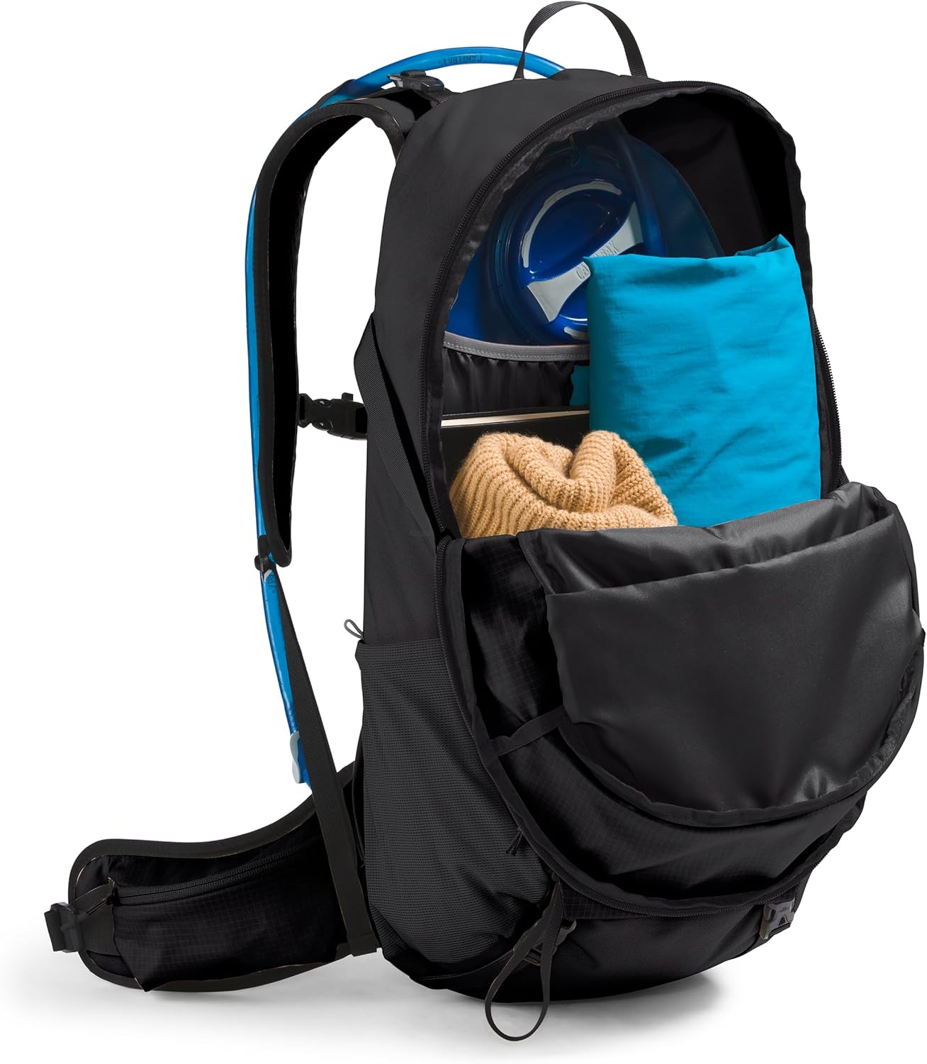 TOTAL ORGANIZATION: A large main compartment with a hydration sleeve stores the essentials, while a stash pocket holds bulky items, and hipbelt pockets keep snacks within reach. Daisy-chain webbing, rear lash points & compression straps anchor extra gear.