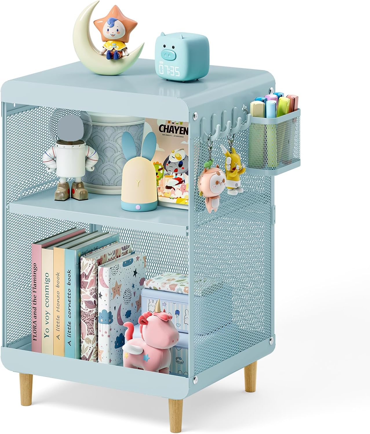 STURDY AND DURABLE - kids side table with 2 tier storage shelves and 1 open shelf gives you plenty of storage space. The kid nightstand is made of thickened metal frame, sturdy and durable. The bottom is equipped with wooden legs, which can not only adjust the stability of the toddler nightstand, but also protect the ground from scratches. The night stand girls room provides you with comfortable use,it is very suitable as a sofa side table,a bedside table, an accent table or a storage side table in your house.