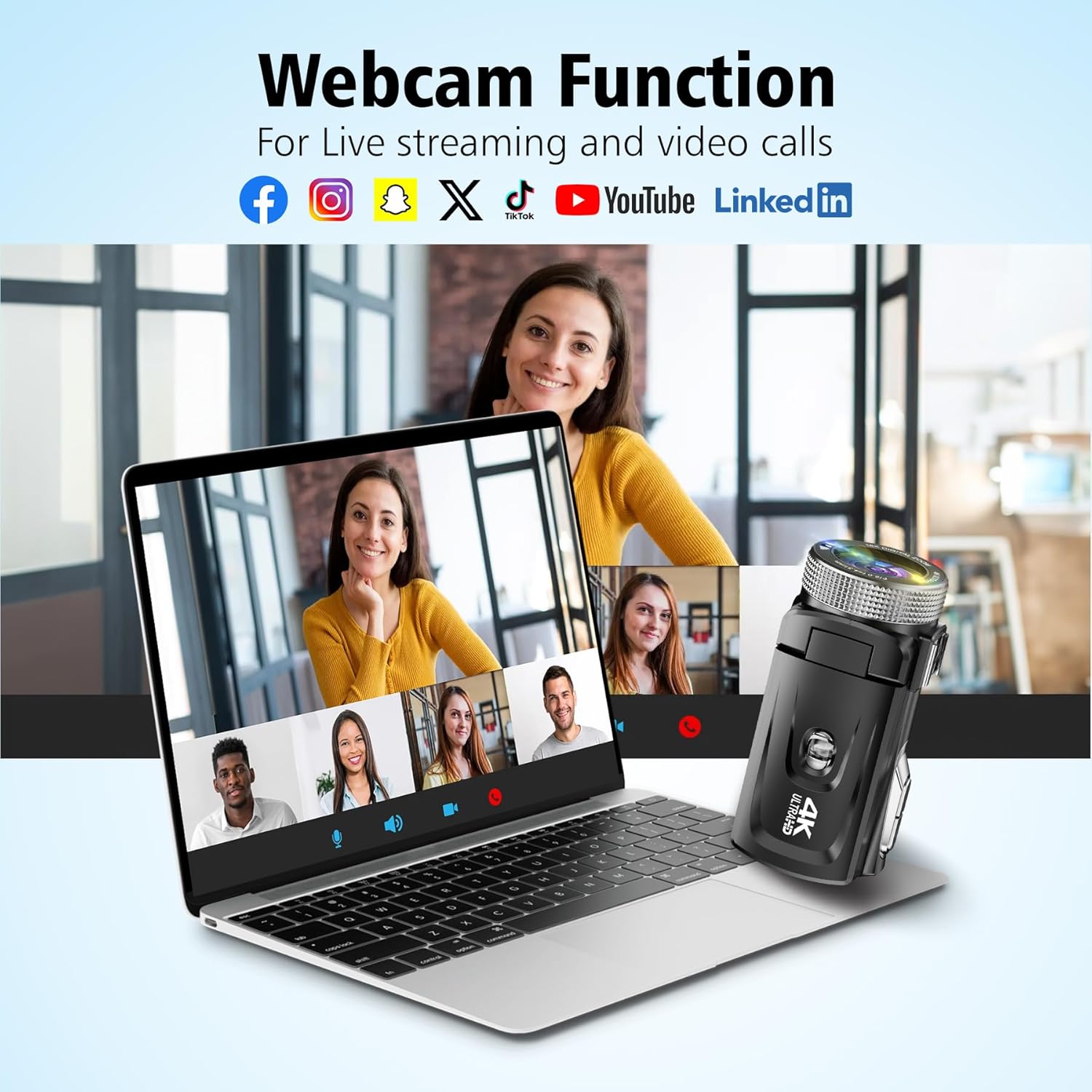 【Webcam y Micrófono Externo】 Esta cámara de vlogging puede usarse como webcam para hacer videollamadas con tu familia y amigos, solo conecta esta cámara 4k con la computadora a través de un cable USB y elige “Cámara de PC” para entrar en modo webcam.