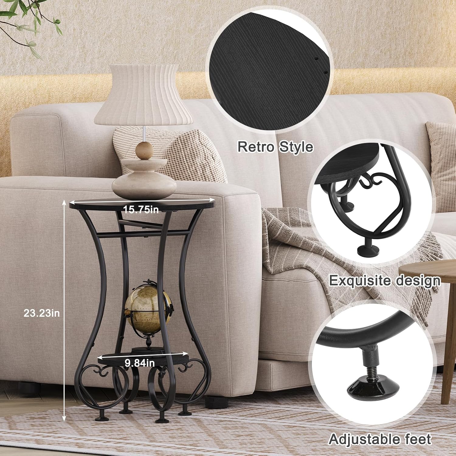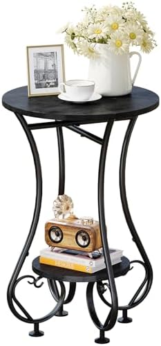 【Functional and Practical Design】:Equipped with 4 adjustable feet,this black round side table offers both functionality and practicality.The adjustable feet protect your floor from scratches and damage while also allowing you to adjust the balance for a stable surface. With an weight capacity of 45 pounds on the top and 22 pounds on the lower shelf,it can hold a variety of items without any worry!