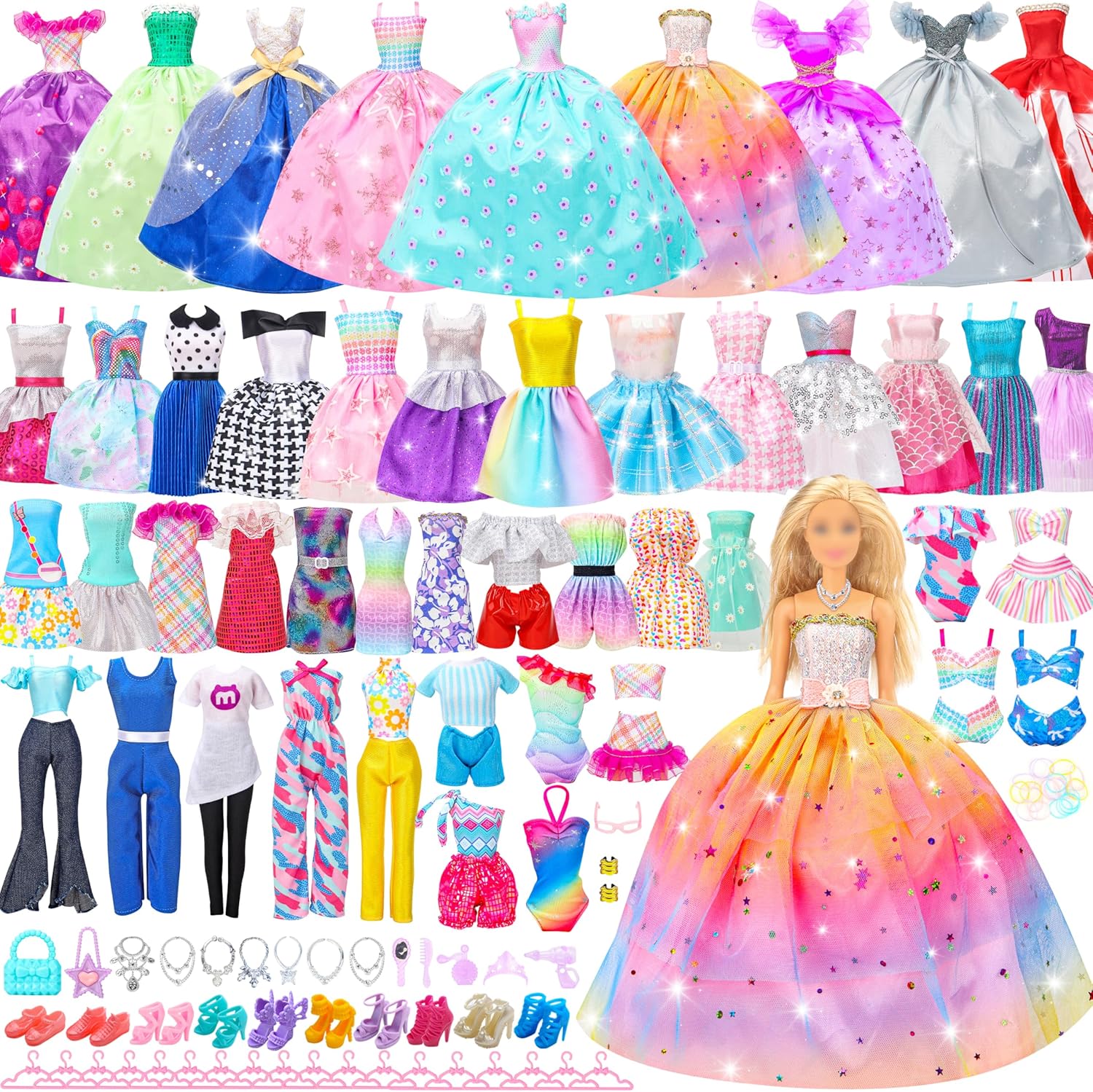 70 Pcs Doll Clothes and Accessories,2 Wedding Gown 6 Fashion Dresses 2 Set Casual Outfits 1 Top 1 Pant Bikini 1 Swimsuit,20 Hanger 10 Shoe 27 Accessories Toys for Girls Kids Birthday Gift