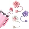 Silicone Straw Caps for 10mm Tumblers | Reusable Dust-Proof Straw Toppers Compatible with Stanley 30oz & 40oz Tumblers (Purple Flower 3pc)