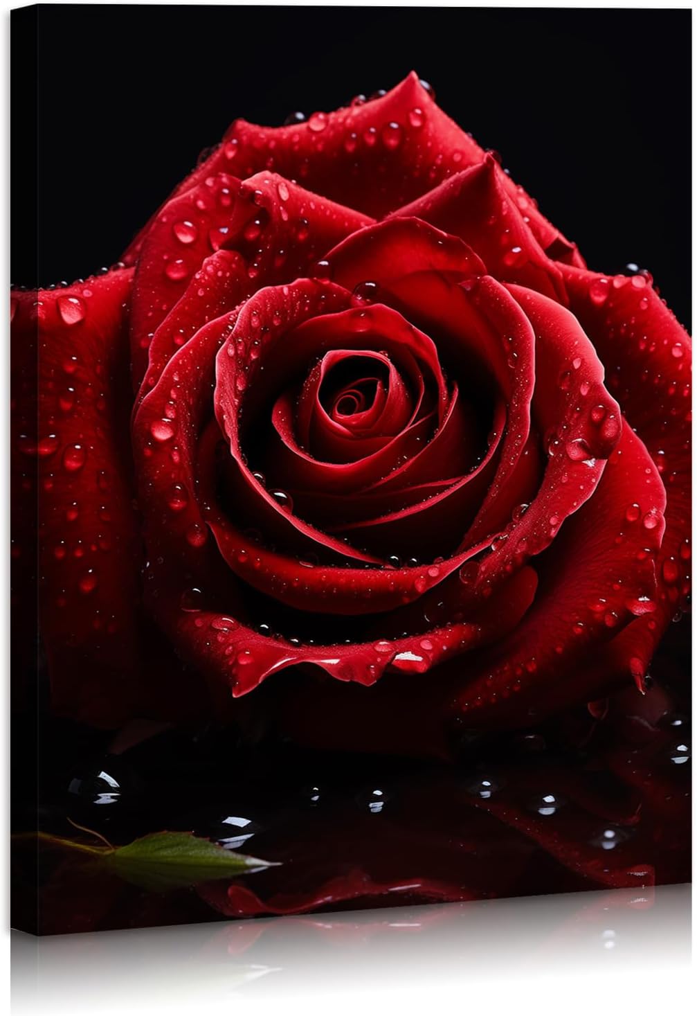 Rose Print Canvas Wall Art Modern Rose Wall Decor Red Wall Art Decorations Flower Picture for Home Modern Bathroom Bedroom Living Room Framed Ready To Hang 12x16 inches