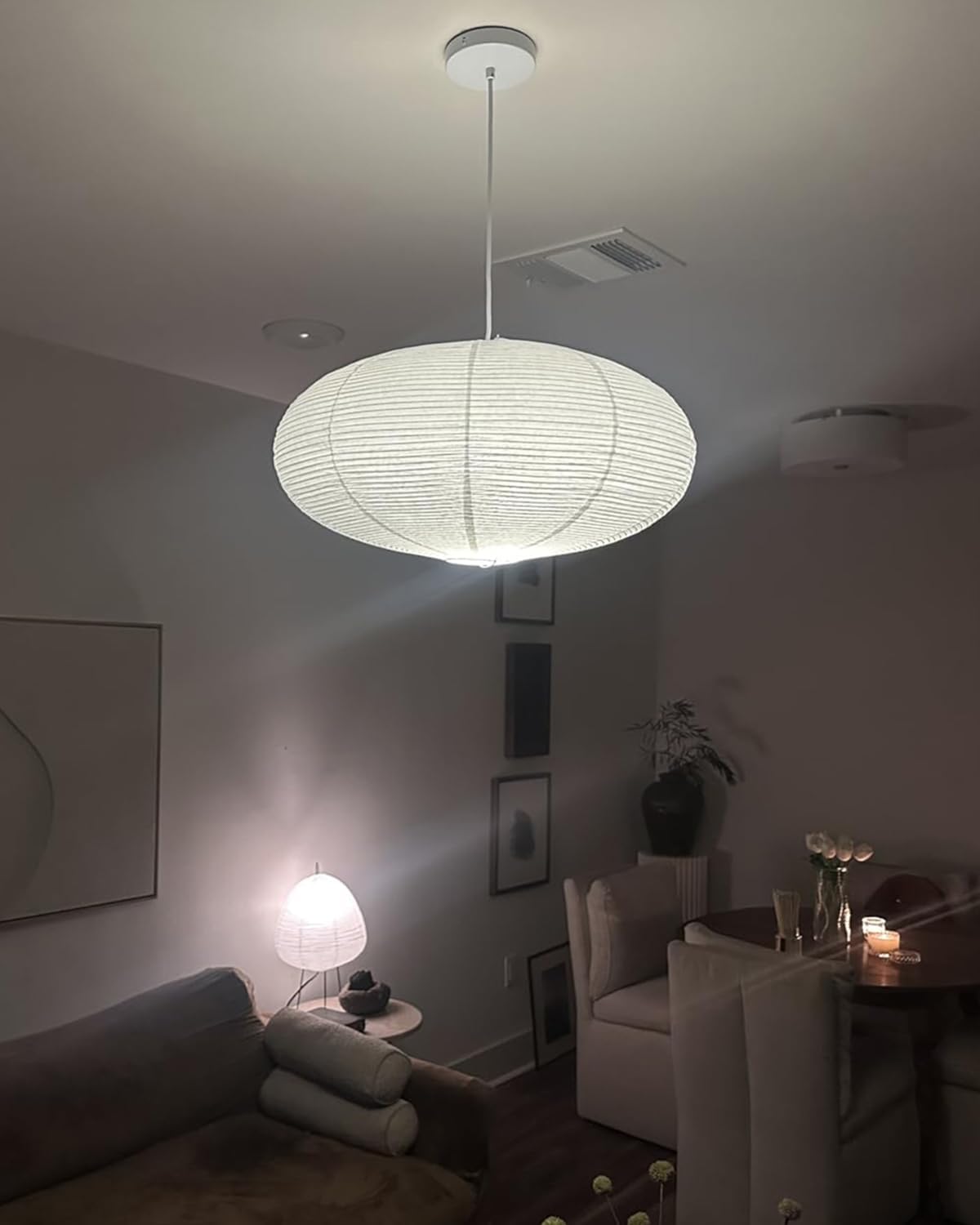 [Showing Individuality]- Our handmade rice paper adds a soft natural texture that sets us apart. The paper shade lamp measures 22inches in diameter, 10.23inches high, top opening 5.31inches, bottom opening 3.74inches. Large, decorative, and easily noticeable, it adds a beautiful landscape to your home and makes your home more cozy and fragrant