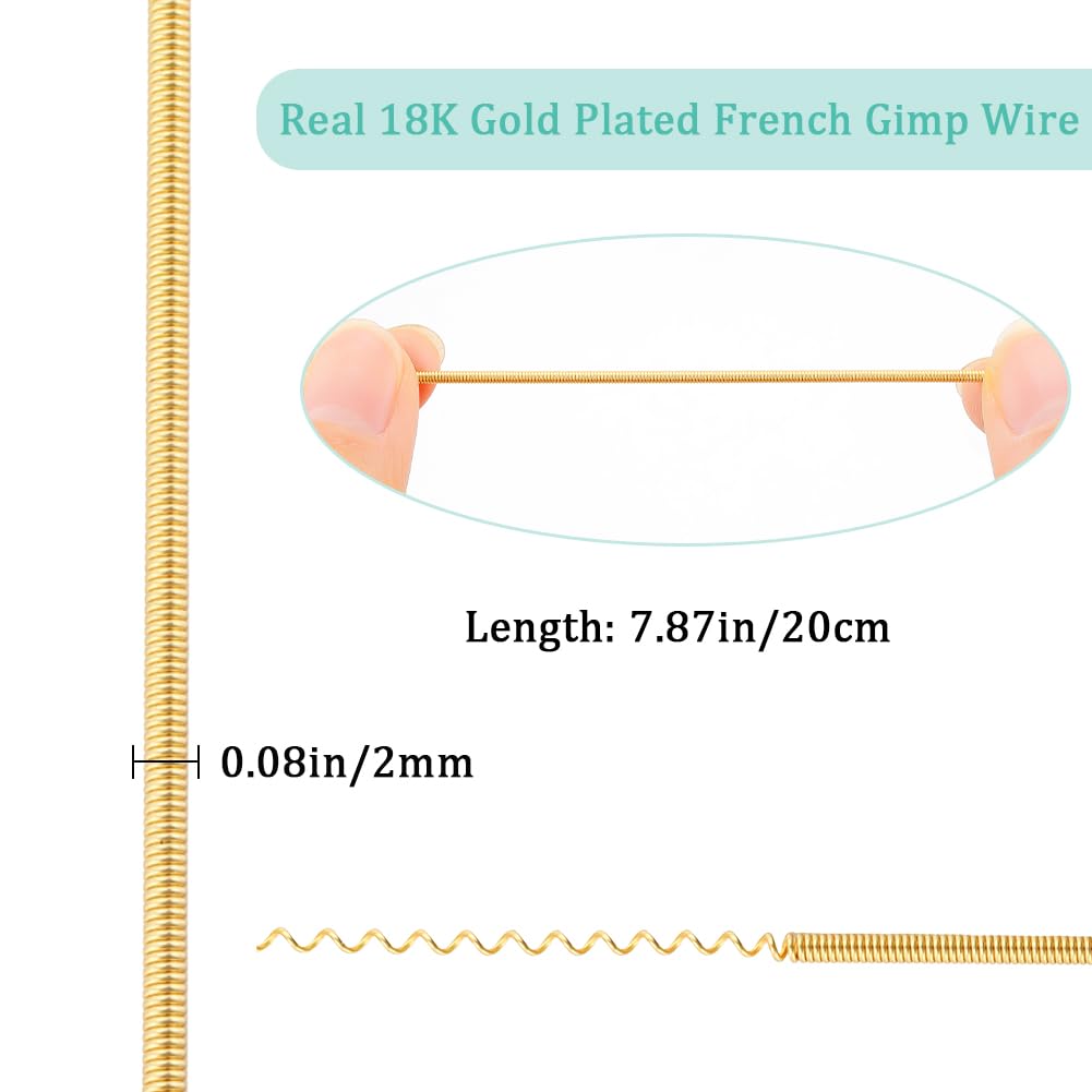 Beebeecraft 1 Box 3.28FT French Gimp Wire 18K Gold Plated Brass Copper French Wire for Jewellery Making (2mm)