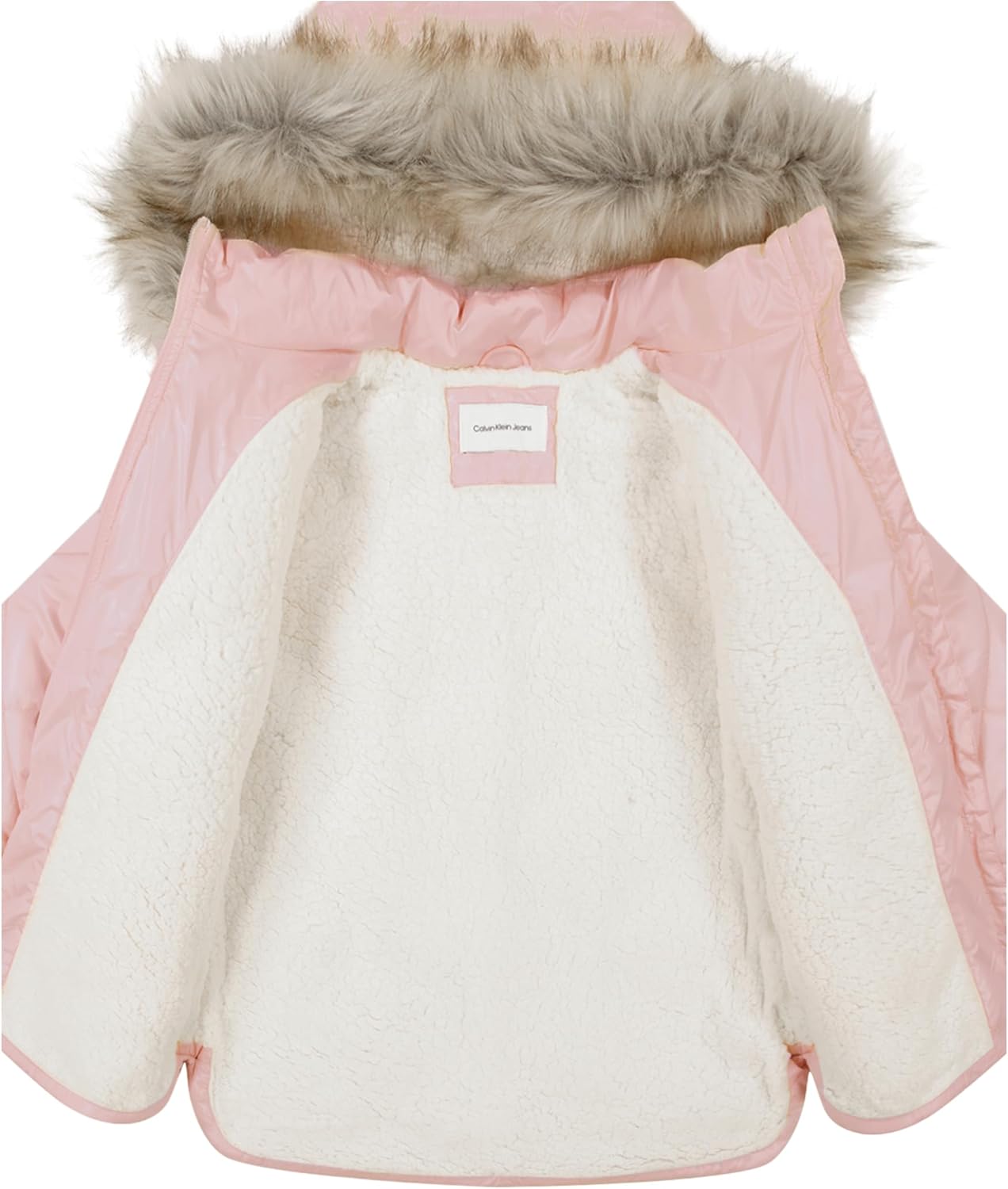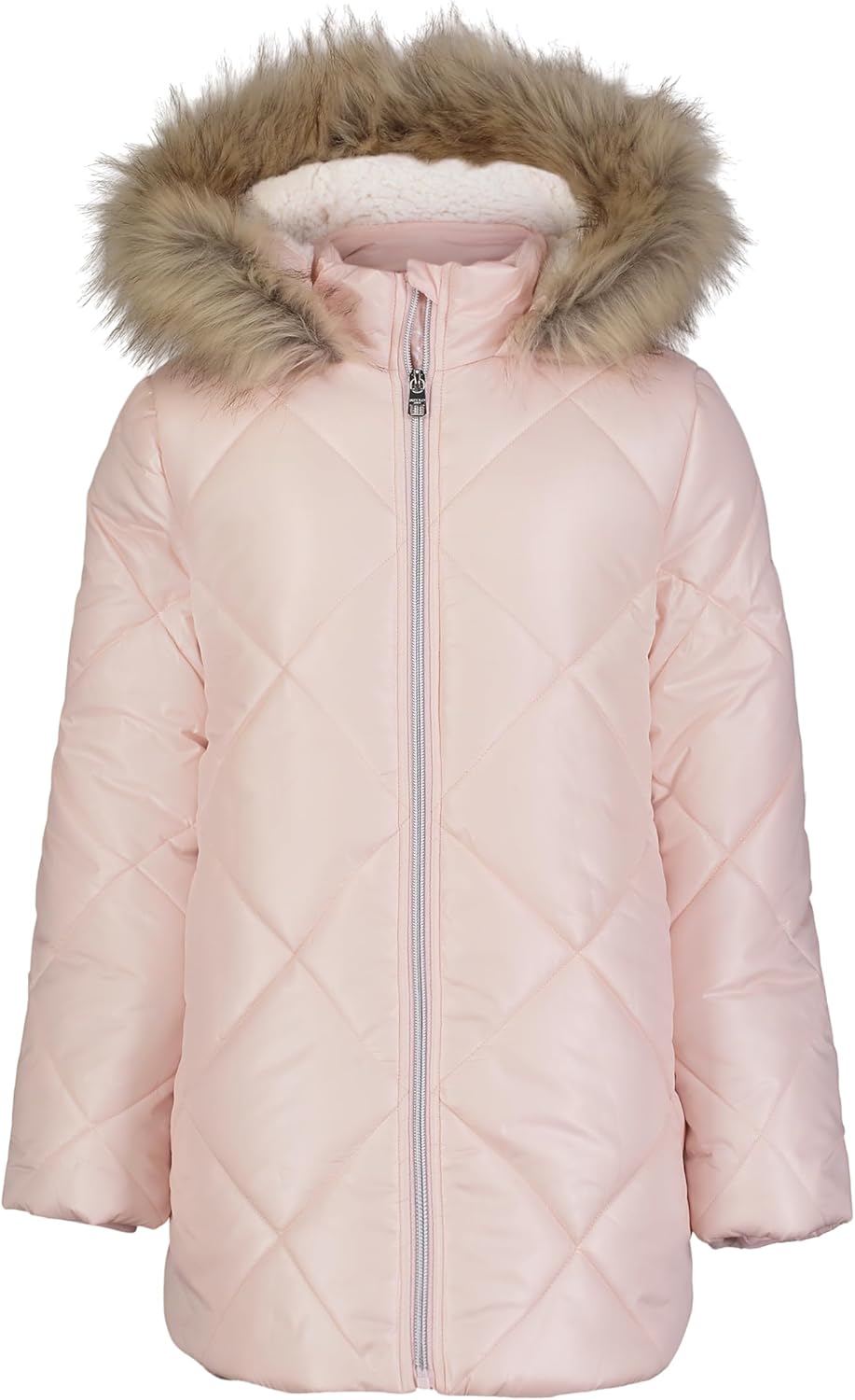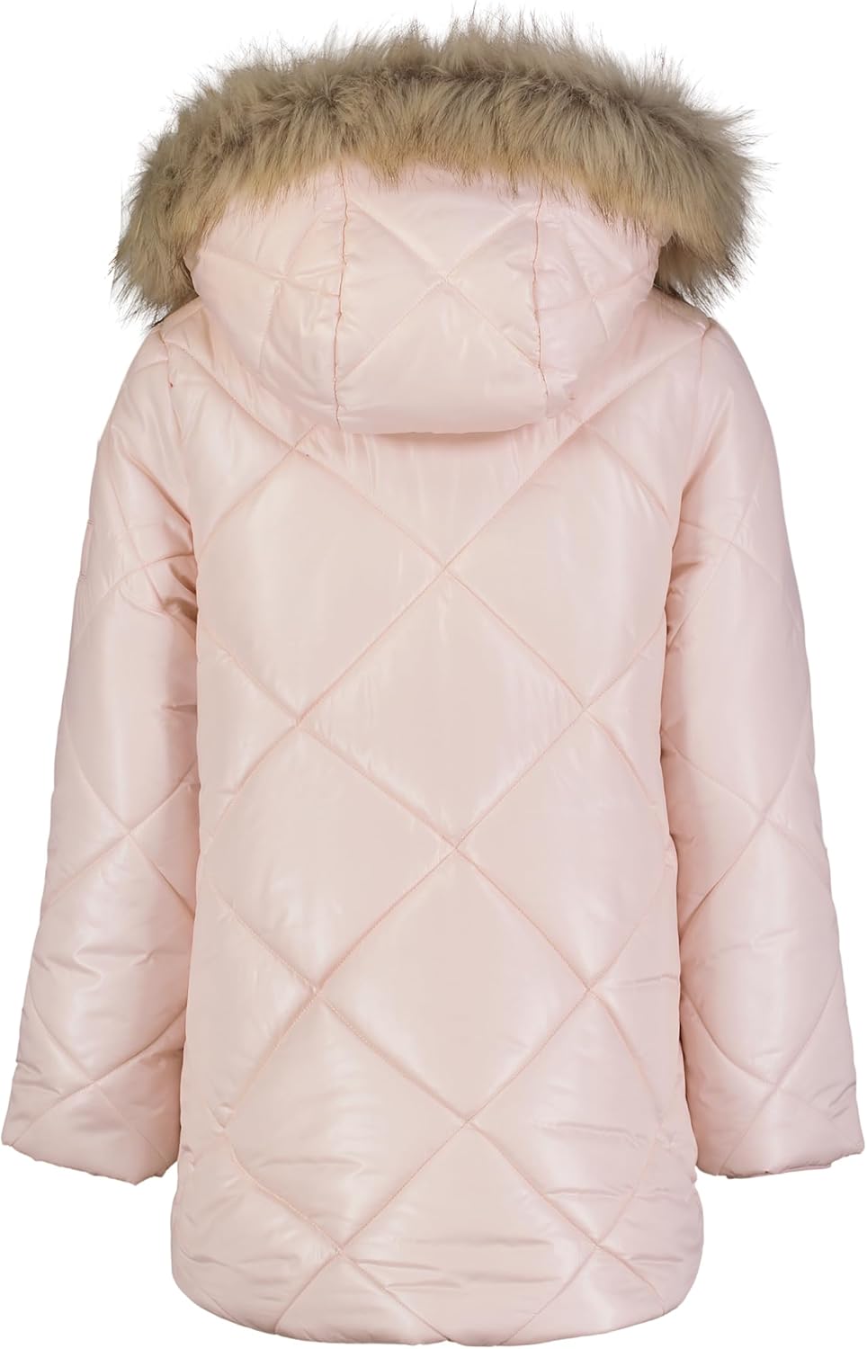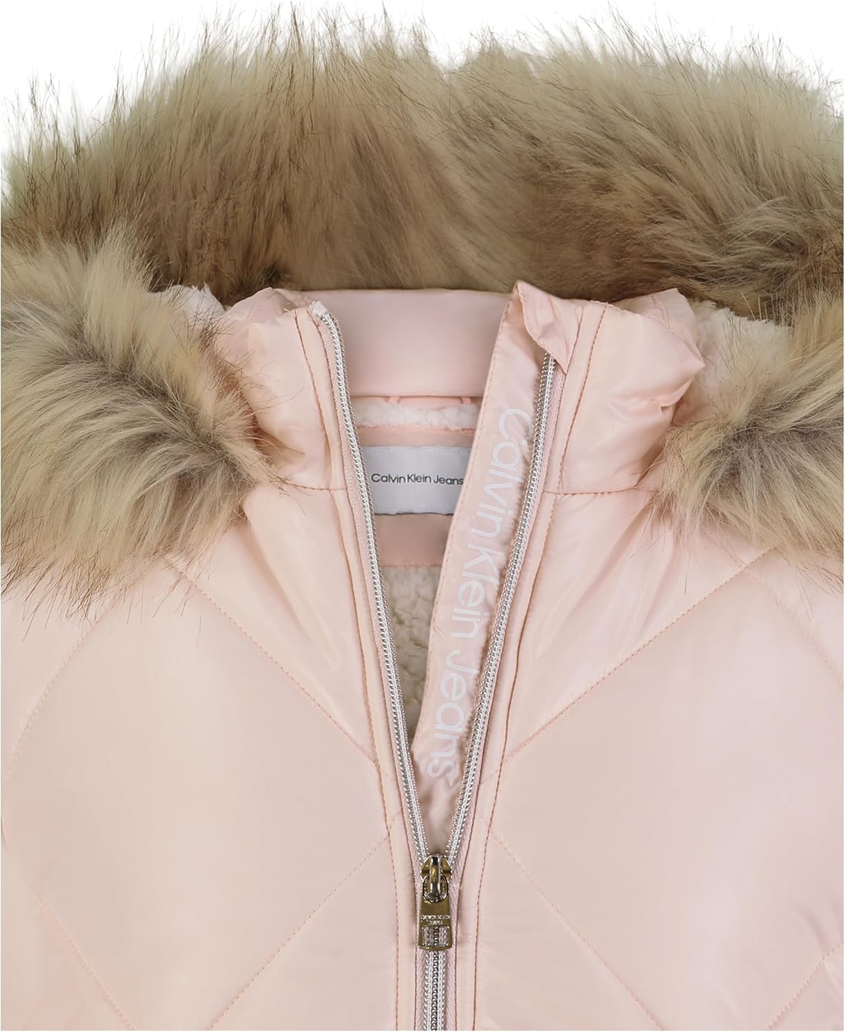 Calvin Klein girls Short Length Hooded Winter Diamond Quilt Puffer Jacket With Fleece Lining