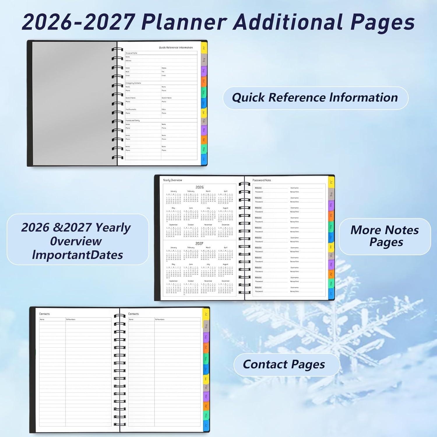 Multi-Functional Design: This Winkooy 2026 calendar planner meets all your planning needs for efficient schedule management. The rainbow monthly tabs streamline flipping through dates and add a playful, stylish visual element.
