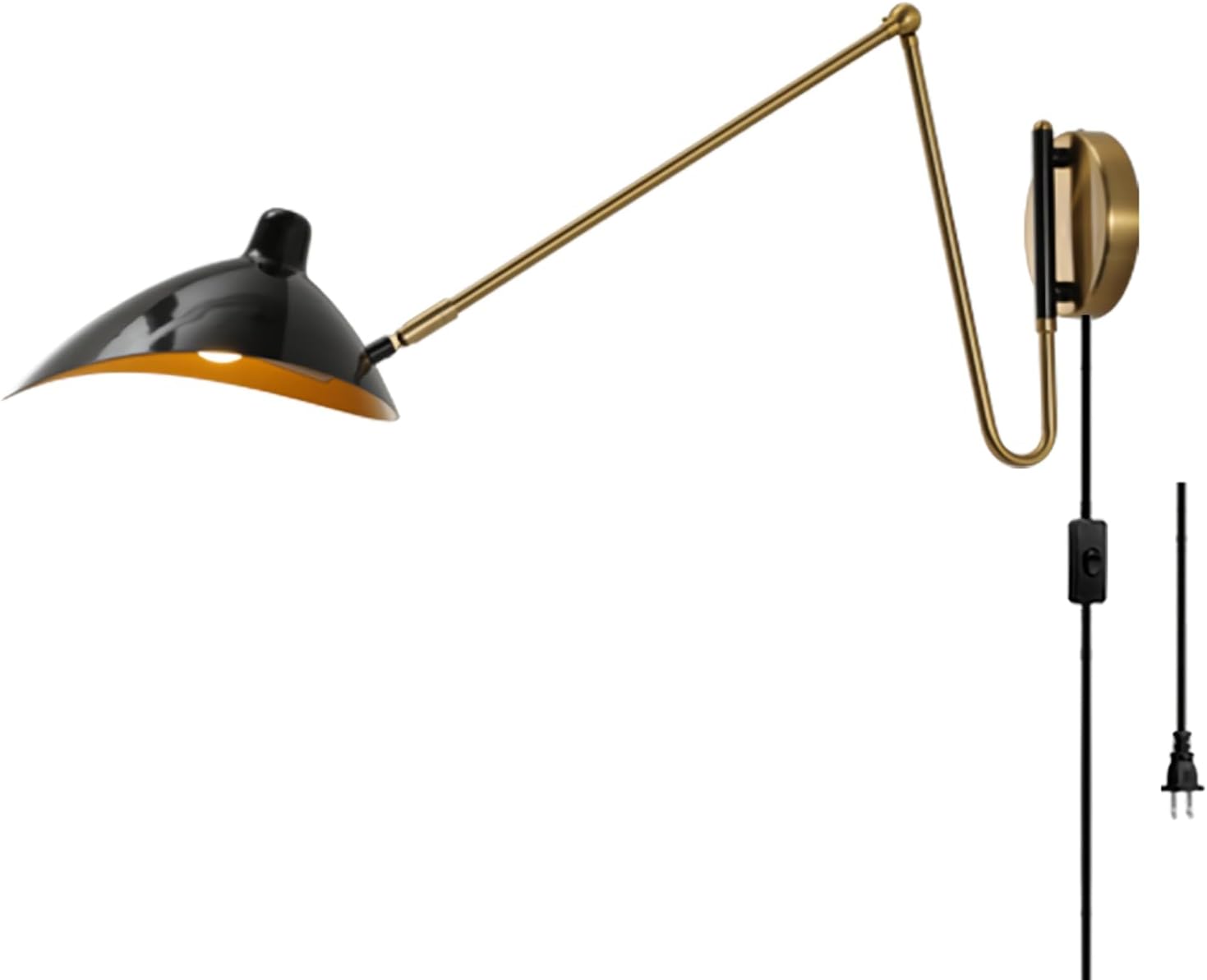 Convenient Adjustable Long Arm Wall Lamp with Plug in Cord, Rotatable Directional Unique Metal Large Swing Arm Wall Sconce for Bedroom Living Room Sofa Backdrop, E12 Bulb Base