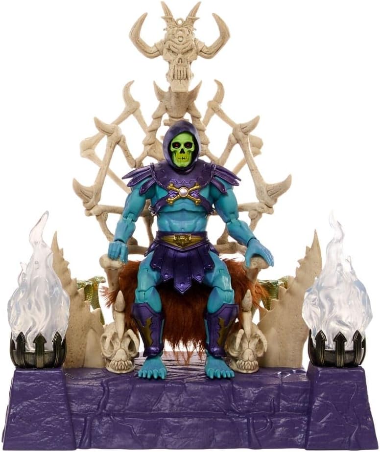 Masters of the Universe Masterverse Skeletor Action Figure and Throne Set, Motu Toy, Lighted Throne, Detachable Hood and Cape, 2 Rod Accessories, HXX63