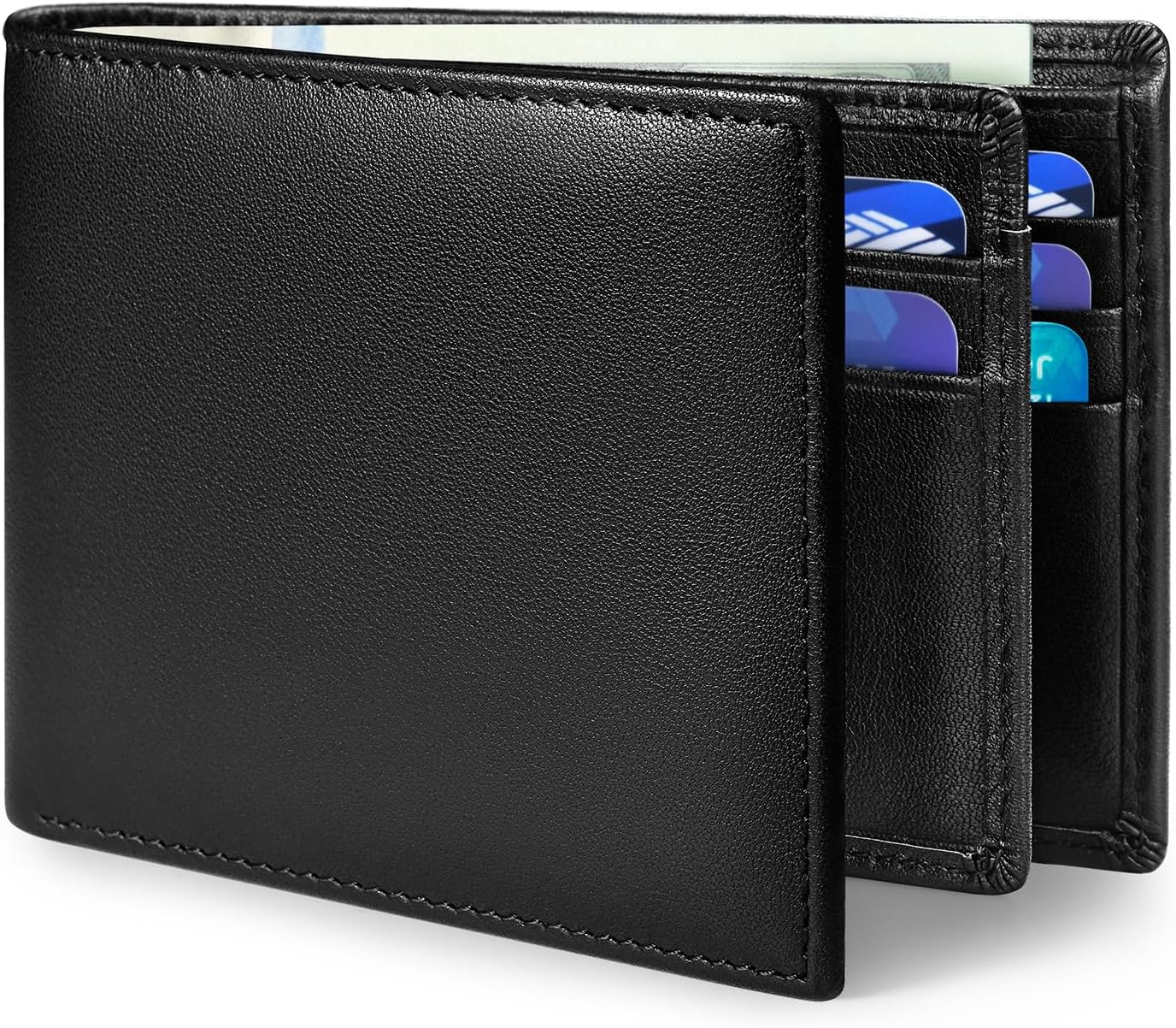 Genuine Leather Mens Wallet, RFID Blocking Bifold Wallet for Men with ID Window, 11 Credit Card Slots (Black)