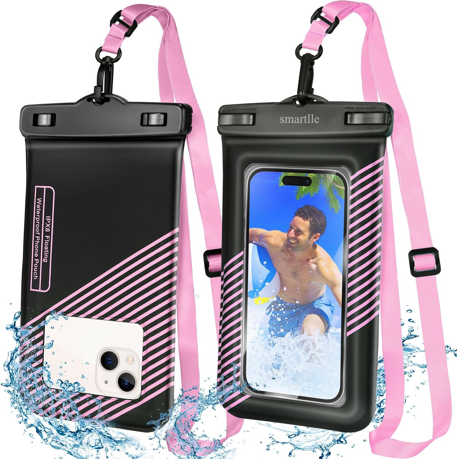 【Complete Waterproof Protection】: With smartlle's triple layer lock-down technology, our pouch effectively keeps your phone 100% waterproof, dirt-proof, and dust-proof, making it perfect for various activities such as swimming, rafting, boating, skiing, snorkeling, kayaking, surfing, fishing, rowing, camping, diving, taking a shower, cruises, kayak, ship, boat, river, lake, water park activities, or any other beach play;