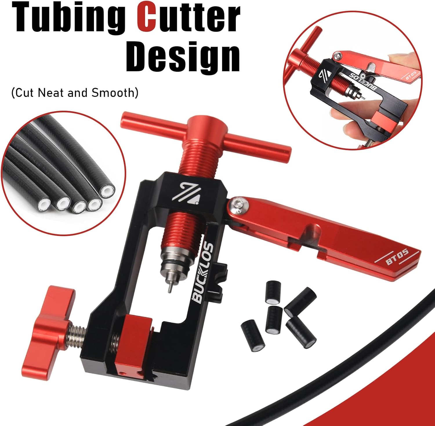 BUCKLOS Bike Brake Hydraulic Disc Brake Hose Fitting Insert Tool, 2 in 1 Needle Driver Insertion Tool with Mineral Hose Cutting Tools BT05 for MTB Road Bike Compatible with BH90/BH59/Avid/MAGURA/Banjo
