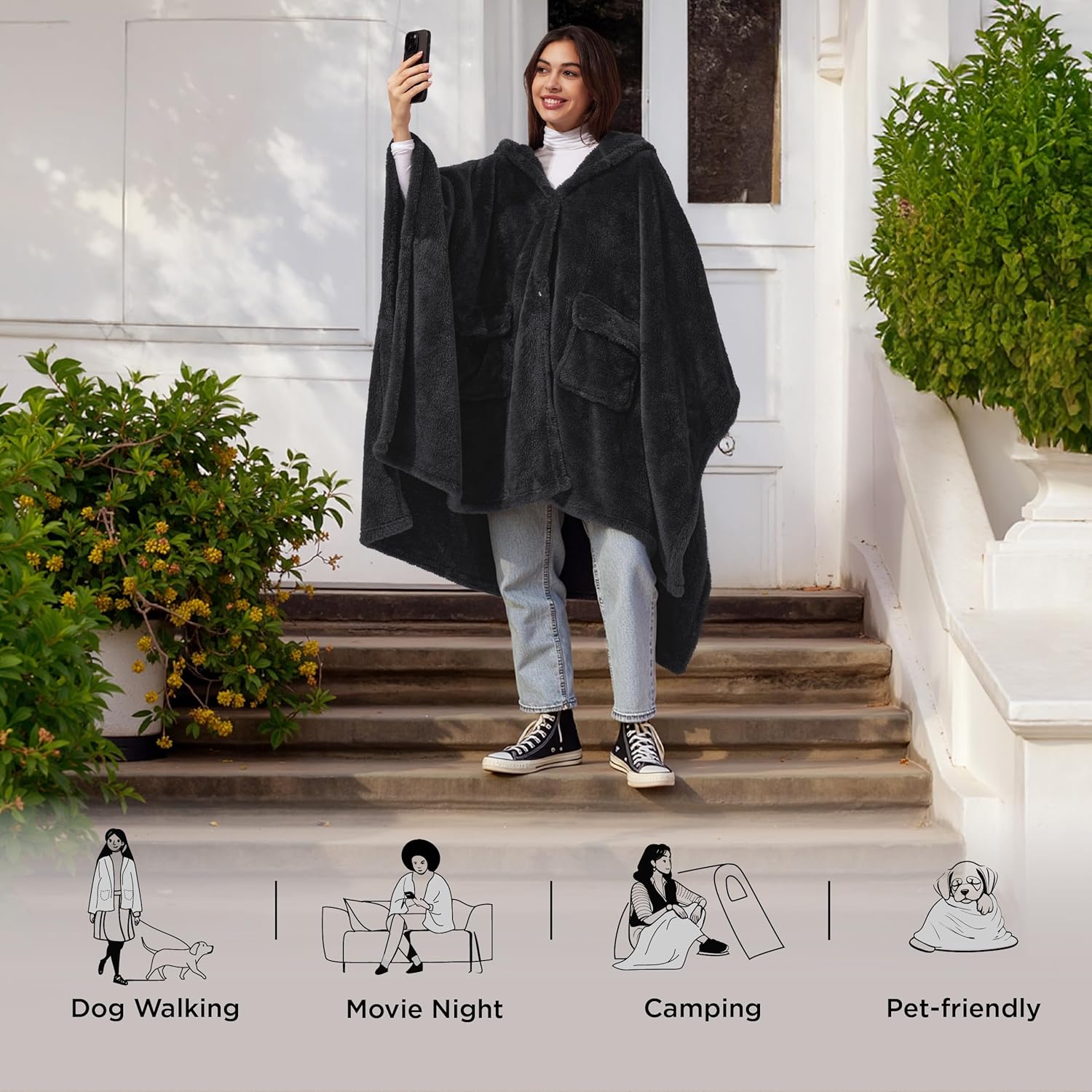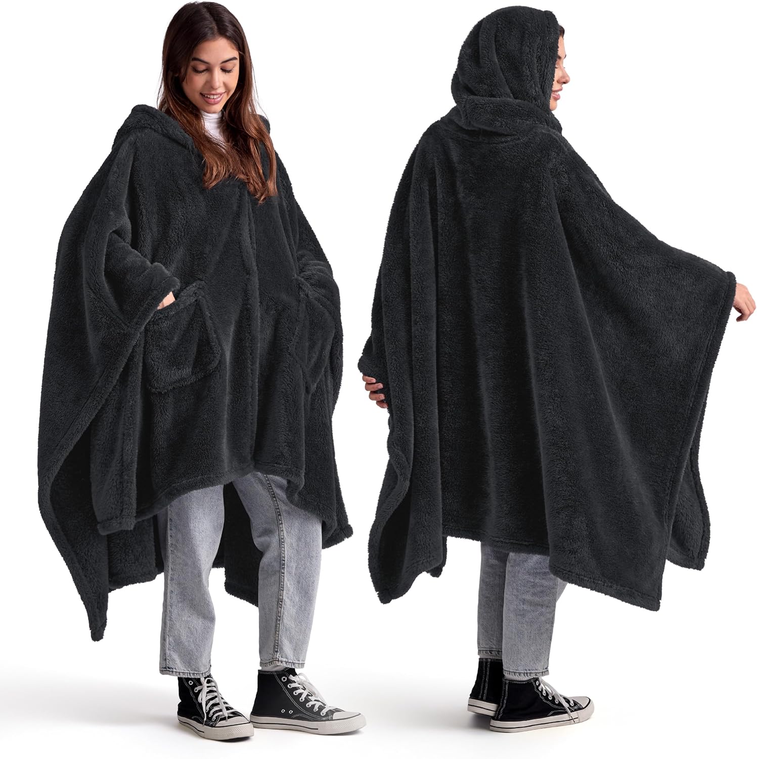 Bedsure Blanket Poncho for Women, Hooded Wearable Fleece Blanket for Adult, Winter Poncho Shawl Wrap Cape as Gifts for Mom