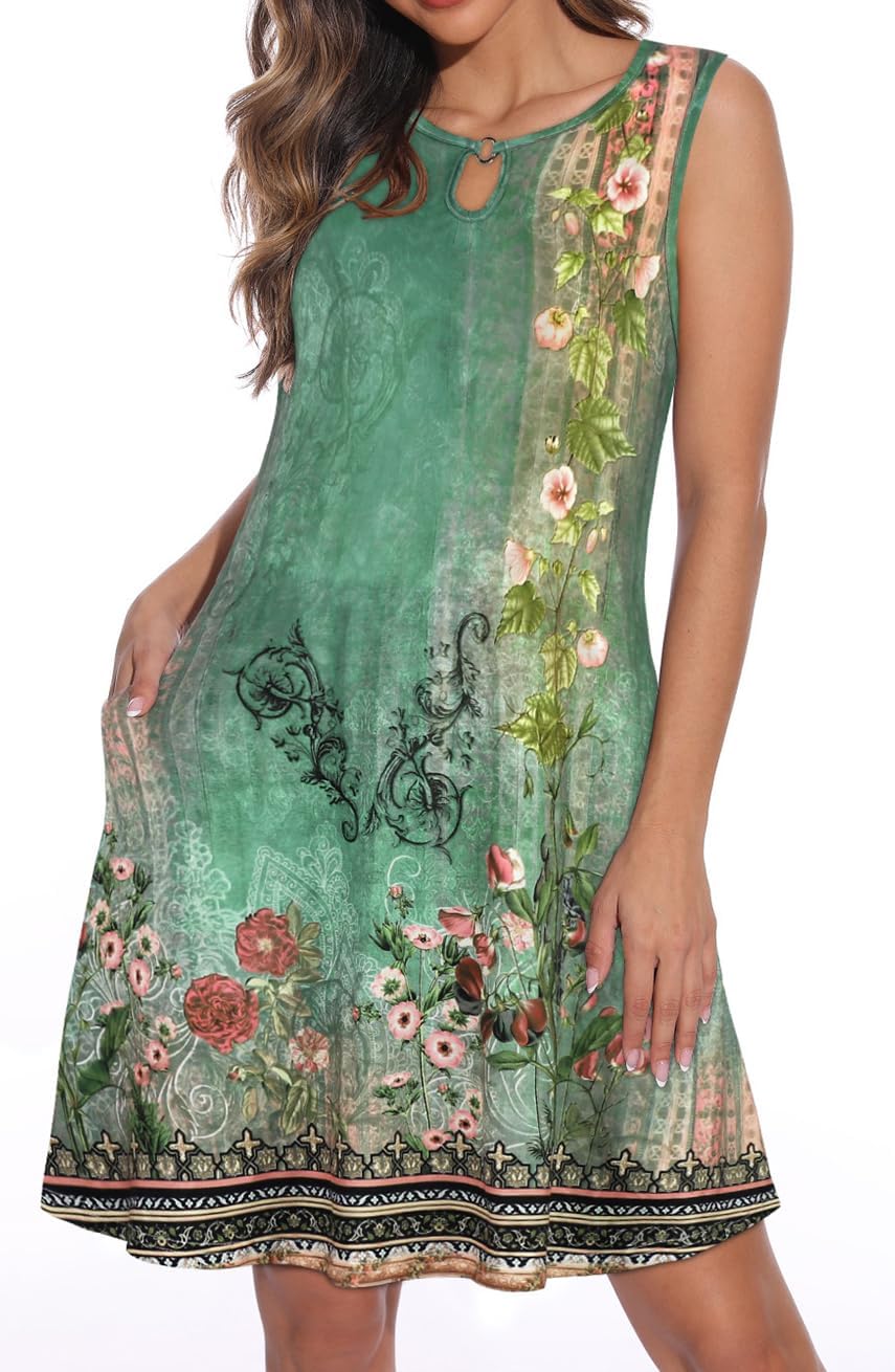 Summer Dresses for Women Casual Sleeveless Sundress Floral Loose Fit Beach Cover Up with Pocket