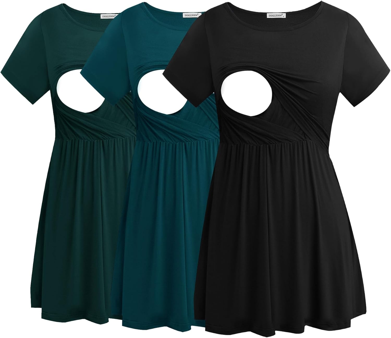 Smallshow Women's Maternity Nursing Tops 3 Pack Short Sleeve Breastfeeding Shirt