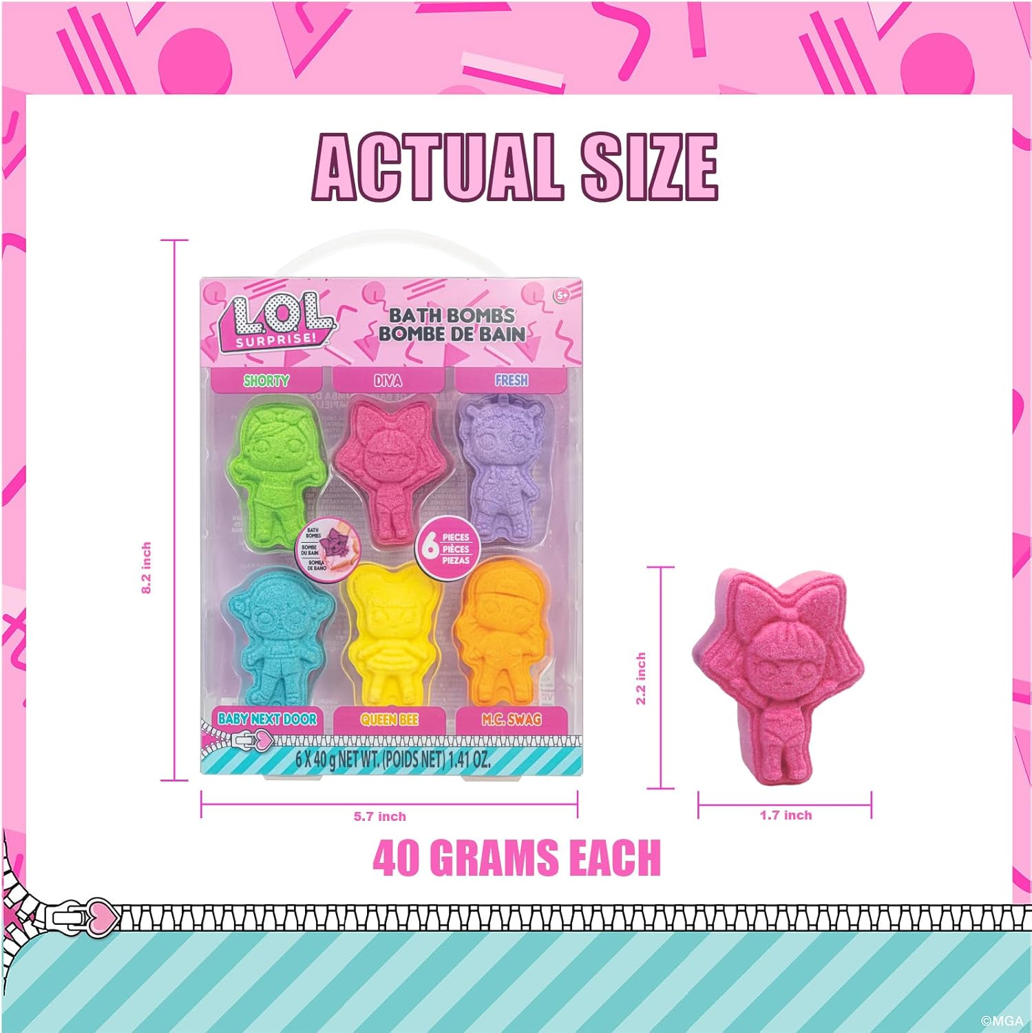 L.O.L. Surprise! 6 Piece Bath Bombs for Kids, Bubble Gum Scented, Bath Toys for Kids, Ages 3+, by Townley Girl