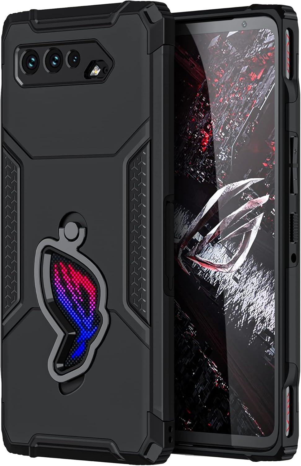 HikerClub for ROG Phone 5 and ROG 5 Pro 5 Ultimate (2021) with Stand, Compatible with Air Trigger, Built in Camera Protectors and Dust Plugs, Invisible Kickstand Shockproof Cover