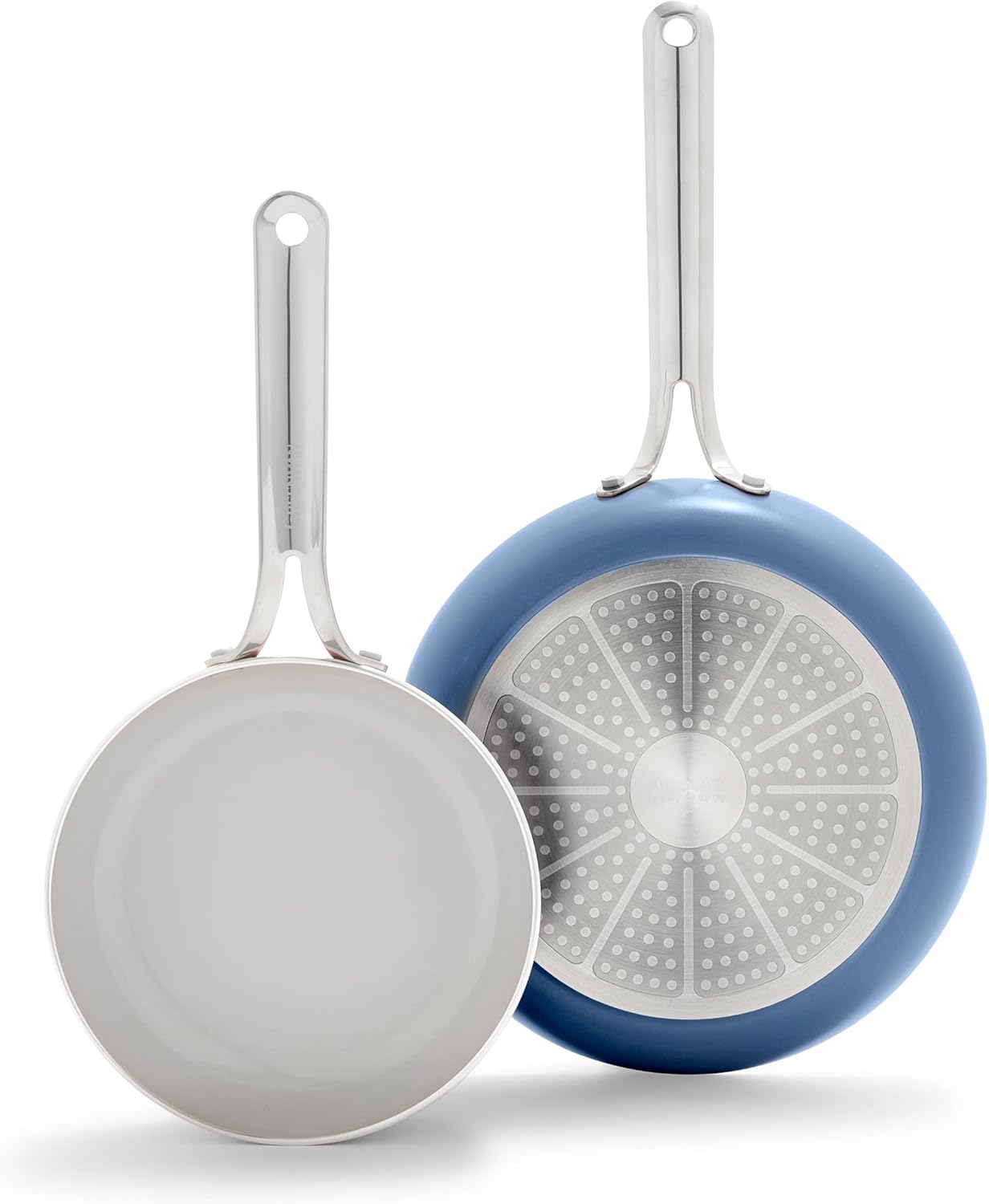 GreenPan Nova 8” & 10” 2 Piece Frying Pan Skillet Set, Oprah’s Favorite Things 2024, Induction Suitable PFAS-Free Nontoxic Ceramic Nonstick, Dishwasher & Oven Safe, Quick Even Heating, Ocean Blue