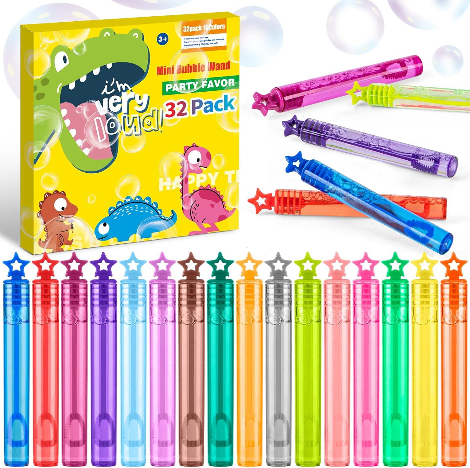 32Pcs Mini Bubble Wands in 16 Colors,Bulk Bubbles Party Favors for Kids Toddlers,Themed Birthday,Goodies Bags Stuffers,Outdoor, Easter Stuffer, Halloween, Boys & Girls