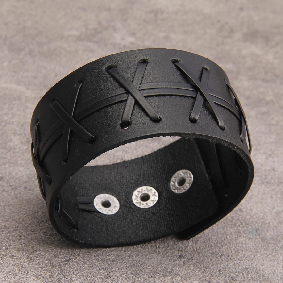 GelConnie Leather Cuff Bracelet Punk Braided Bracelets Rock Leather Wristbands Faux Mens Leather Bracelet Gothic Viking Bangle Adjustable Wrap Bracelet for Women,Men
