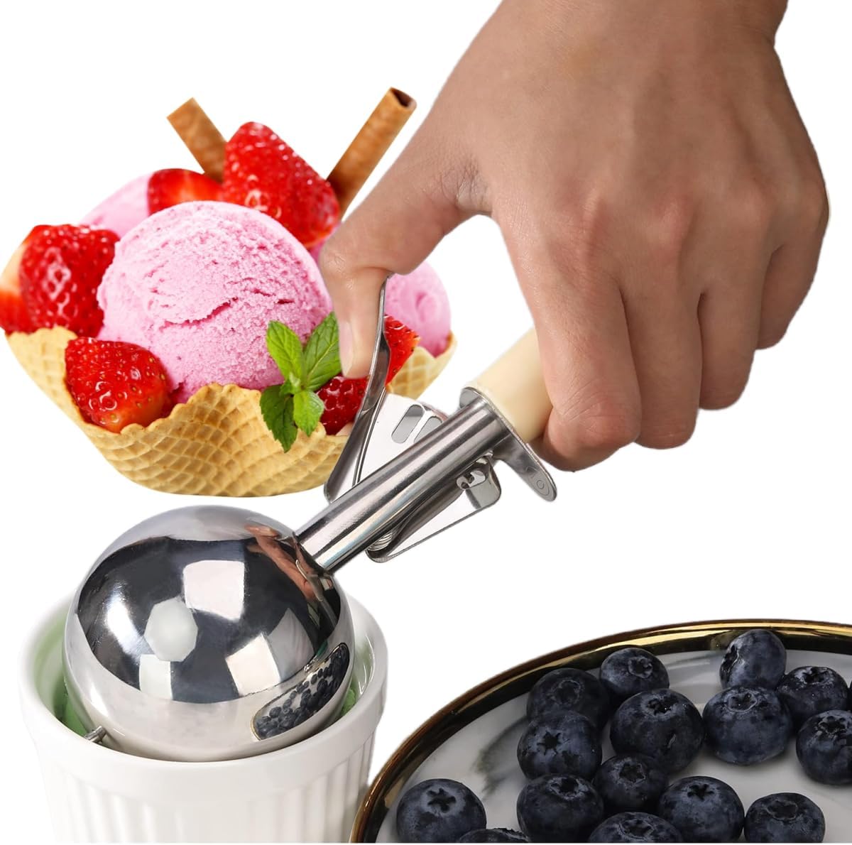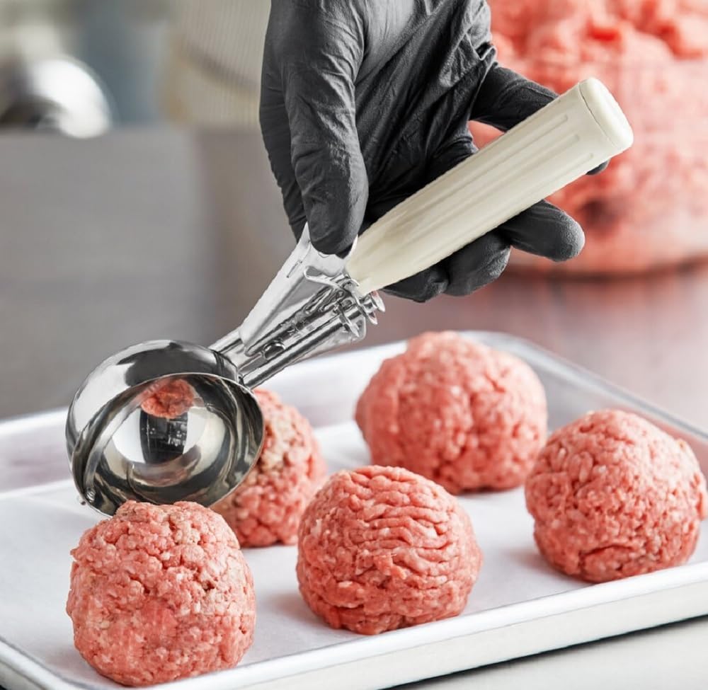 [Easy to Use]-Save time preparing food and portioned servings. Comfortable color-coded handle and spring action trigger make it easy to scoop food,Perfect for: cookie dough, ice cream, frozen yogurt, gelatos, sherbets, rice, chicken salad portion, mashed potatoes and much more!