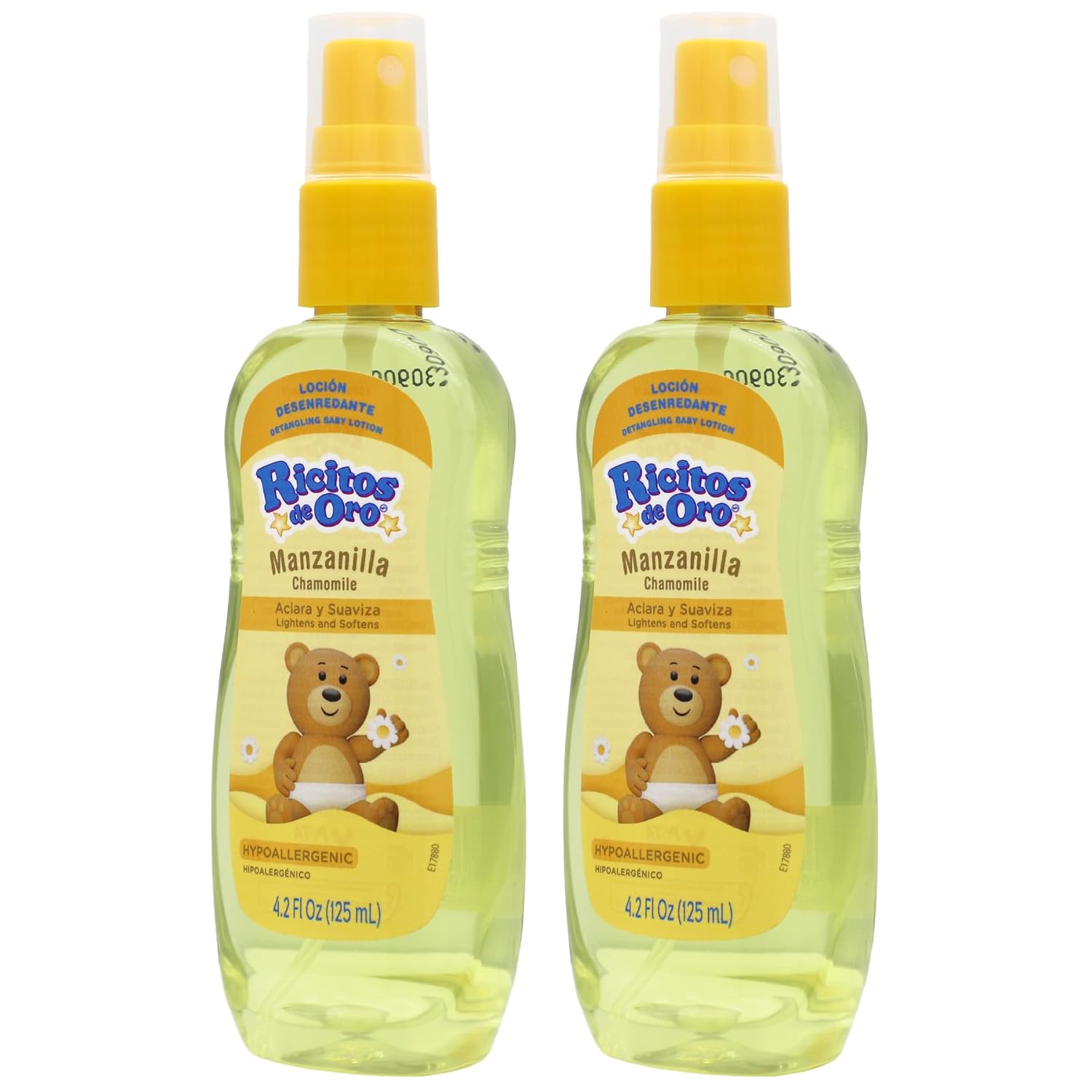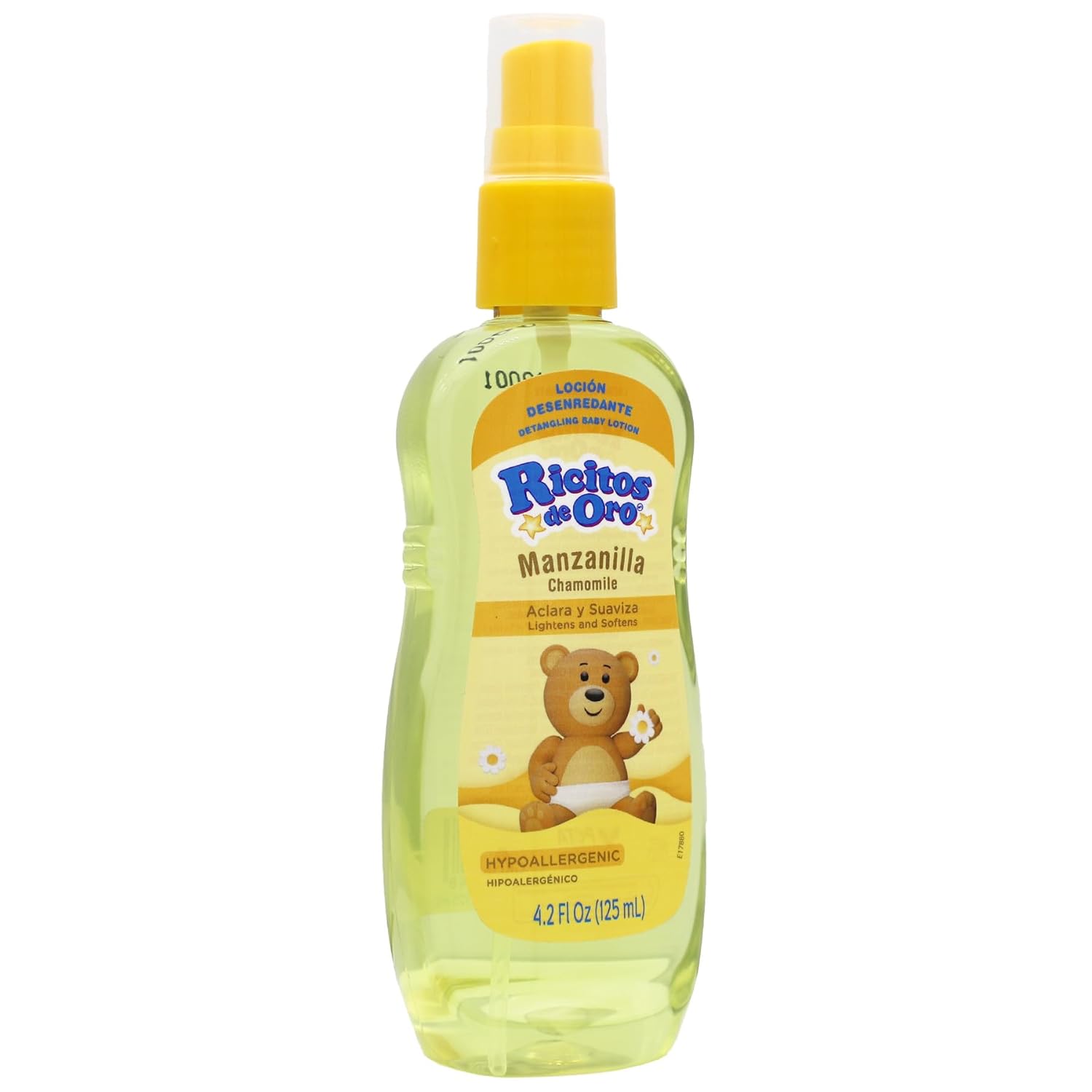 Ricitos de Oro is Spanish for Goldilocks, this Manzanilla Lotion was formulated to help Lighten and Protect the gentle Hair of both Blonde and Brown Hair tones for Babies, Children, and Adults.- Chamomile Scented- Tear Fee Formula- No Artificial Colors- Quick Access Top- Rattler IncludedIf you are looking for Tear Free, Hypoallergenic Baby Lotion that helps to provide your childs hair clean, silky, conditioned, and smelling sweet then Ricitos de Oro Chamomile Baby Lotion is for you.Make bath time more enjoyable with this tear free Baby Lotion. The bottle is Mother approved as it was designed to not only be easy to use with its quick access pop-top, but also contains an actual rattle. Ricitos de Oro Baby Lotion is Hypoallergenic and helps to clarify and preserve the natural hair tones, leaving their locks shiny, clean, and conditioned for easy combing for Children of all ages.