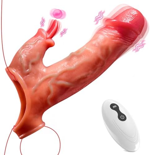 Penis Sleeve Cock Sleeve Vibrator - Realistic Male Sex Toys Penis Extender Penis Enlarger Vibrating Cock Ring 8 Modes, Remote Control, Elastic Penis Ring for Men Erection Sex, Sex Toys for Men Couple