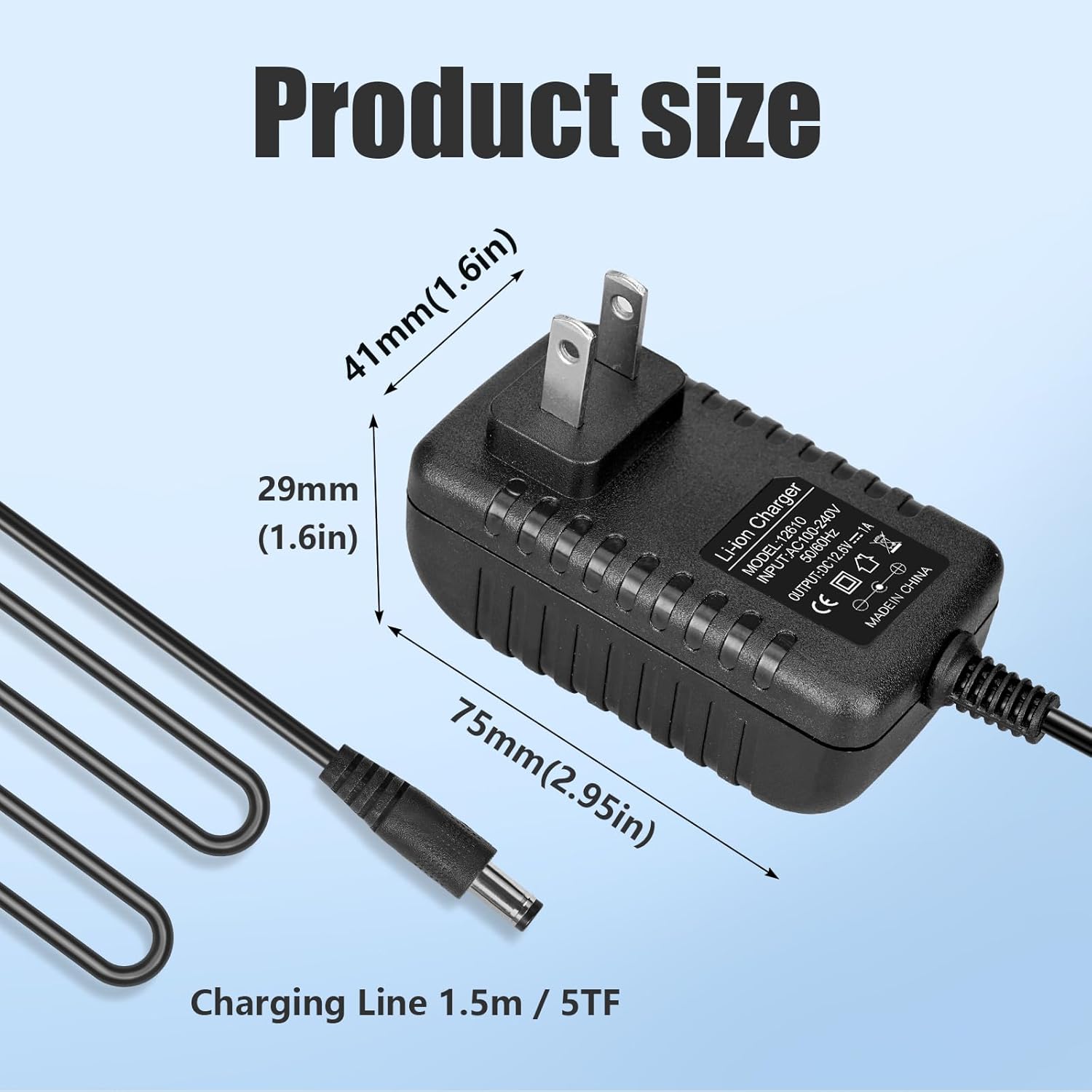 【Product Specification】 Input: AC 100~240V, 50/60Hz ; Output: DC 12.6V, Max 1.0A ; with 5.5 mm x 2.1 mm DC head.35.43inch /0.9M extra long power cords