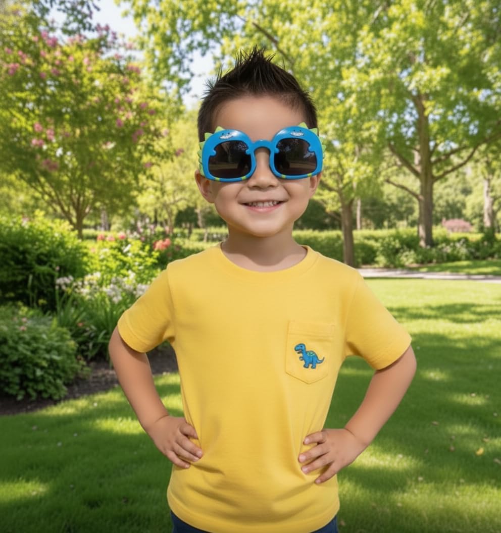 Dinosaur Cartoon Toddler Sunglasses for Kids Aged 2-6, UV400 Protection, Secure Fit for Outdoor Play