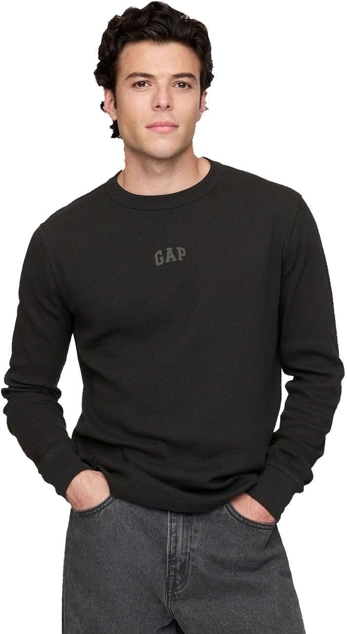 GAP Men's Long Sleeve Logo Waffle Crewneck Tee T-Shirt