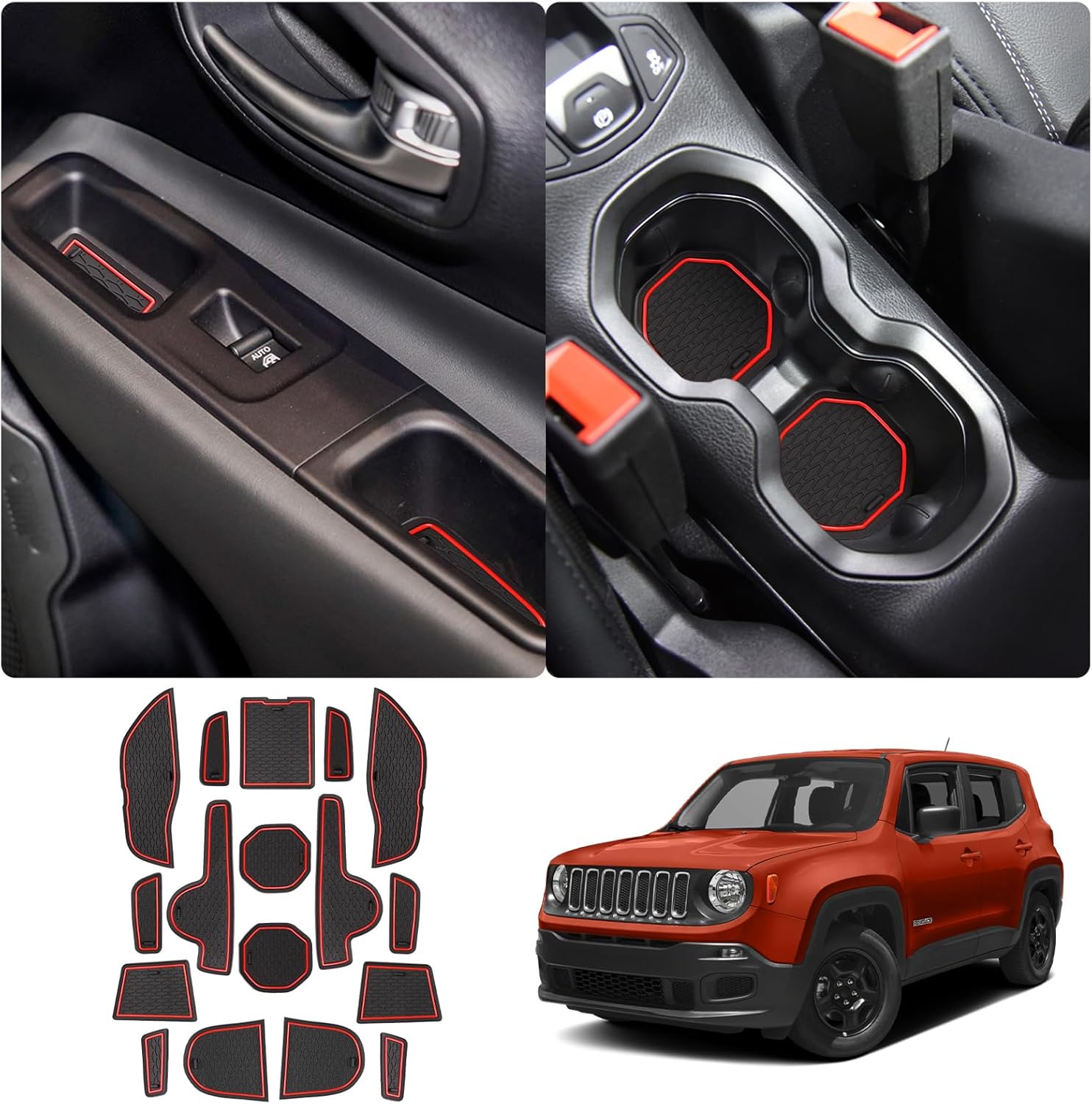 LUWU Renegade Center Console Liners Mats, 17PCS/Set Cup Holder Inserts Mats for 2015-2017 Jeep Renegade BU Latitude/Limited/Trailhawk Center Console Shifter Liner Trim Mats Jeep Renegade Accessories