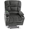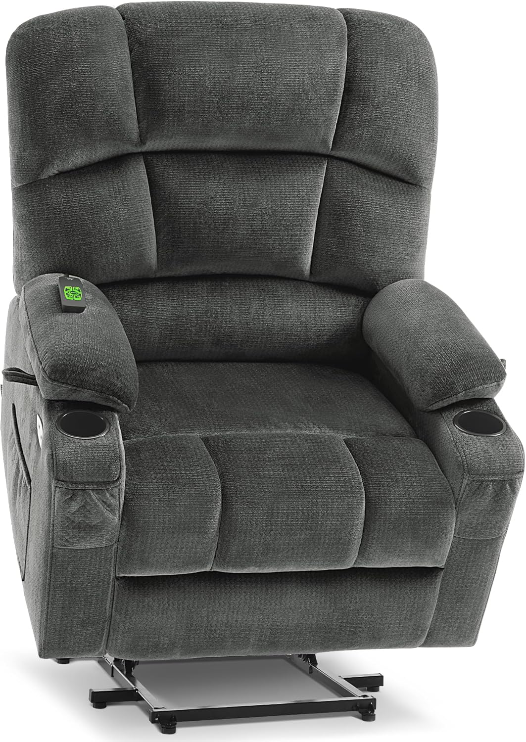 MCombo Oversized Dual Motor Power Lift Recliner Chair Sofa with Massage and Heat for Big Elderly People, Infinite Position, USB Ports, Fabric R7688 (Grey, Large-Oversize)