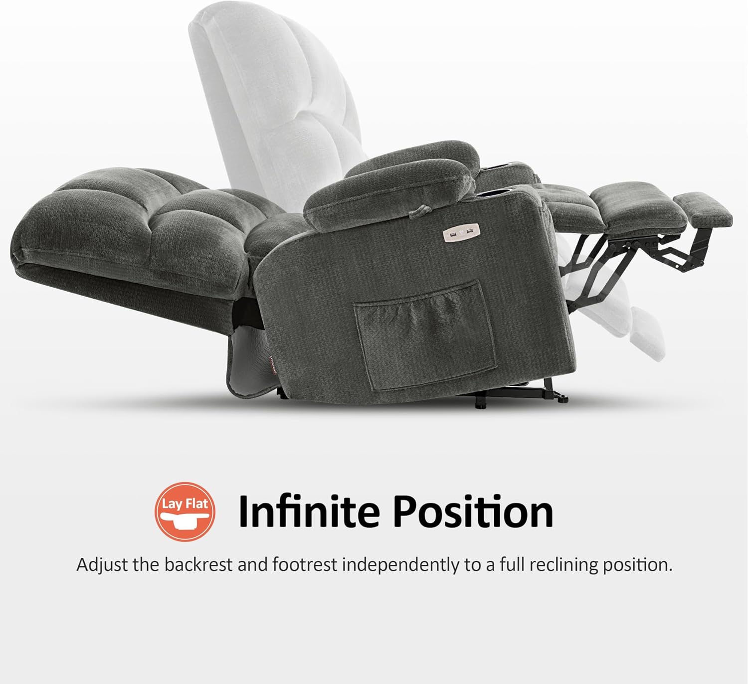 DUAL MOTOR: With the help of built-in dual motor, the chair's backrest and footrest work independently, it means you can adjust to the infinite position you want, lift, TV, and lay flat (Max reclining angle: 165°)